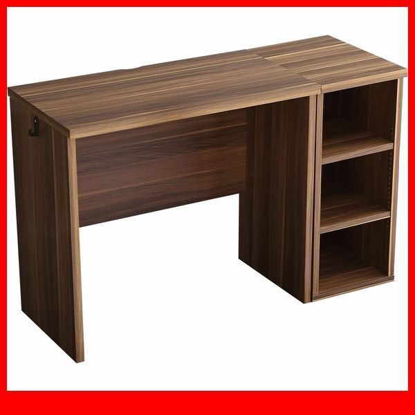 机★新品/ヴィンテージ シンプルデスク75cm幅+サイドラック30cm幅/収納棚付き105cm幅万能ワークデスクに/木目調 茶系 ウォールナット/a3