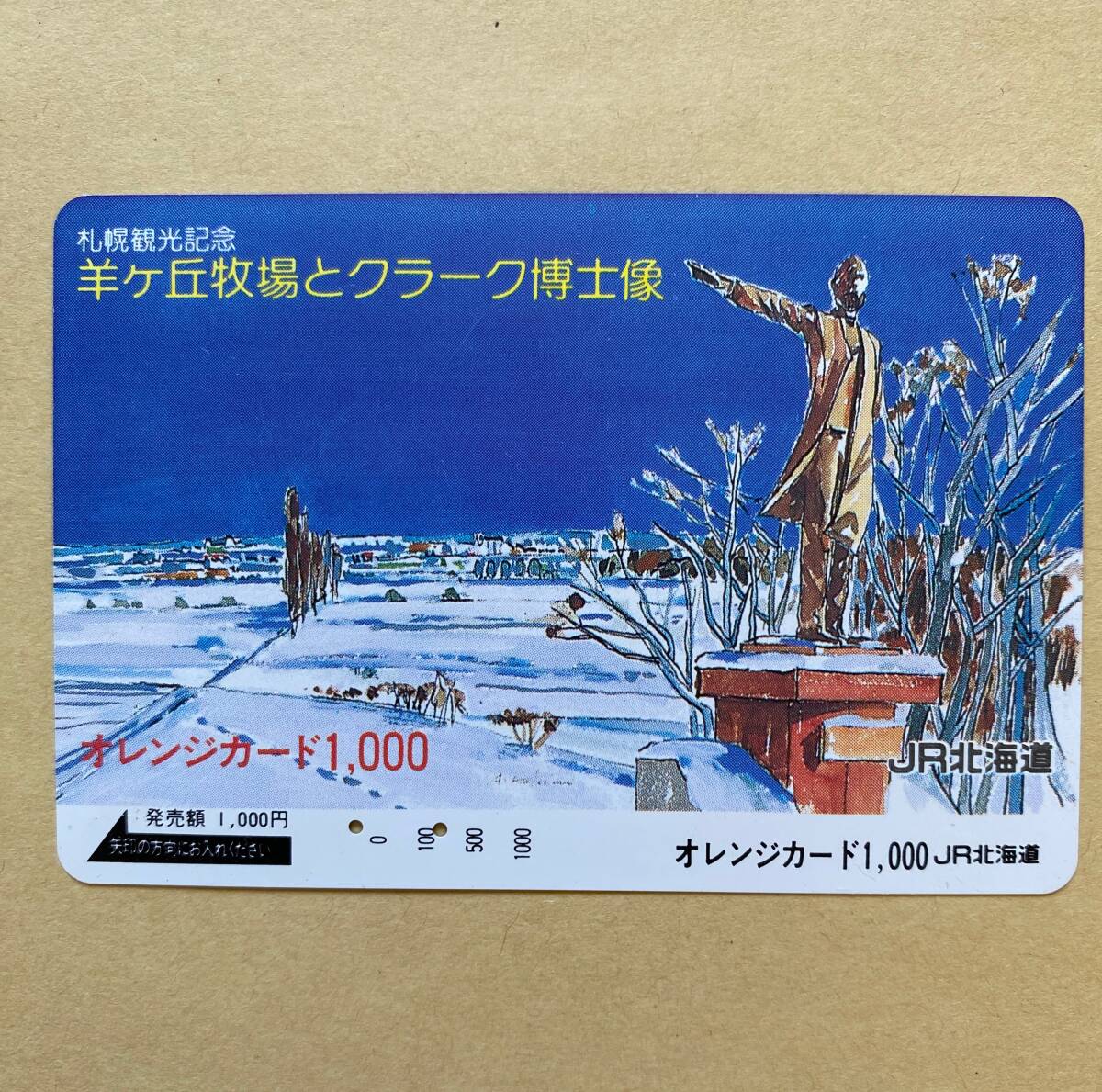 【使用済】 オレンジカード JR北海道 札幌観光記念 羊ケ丘牧場とクラーク博士像