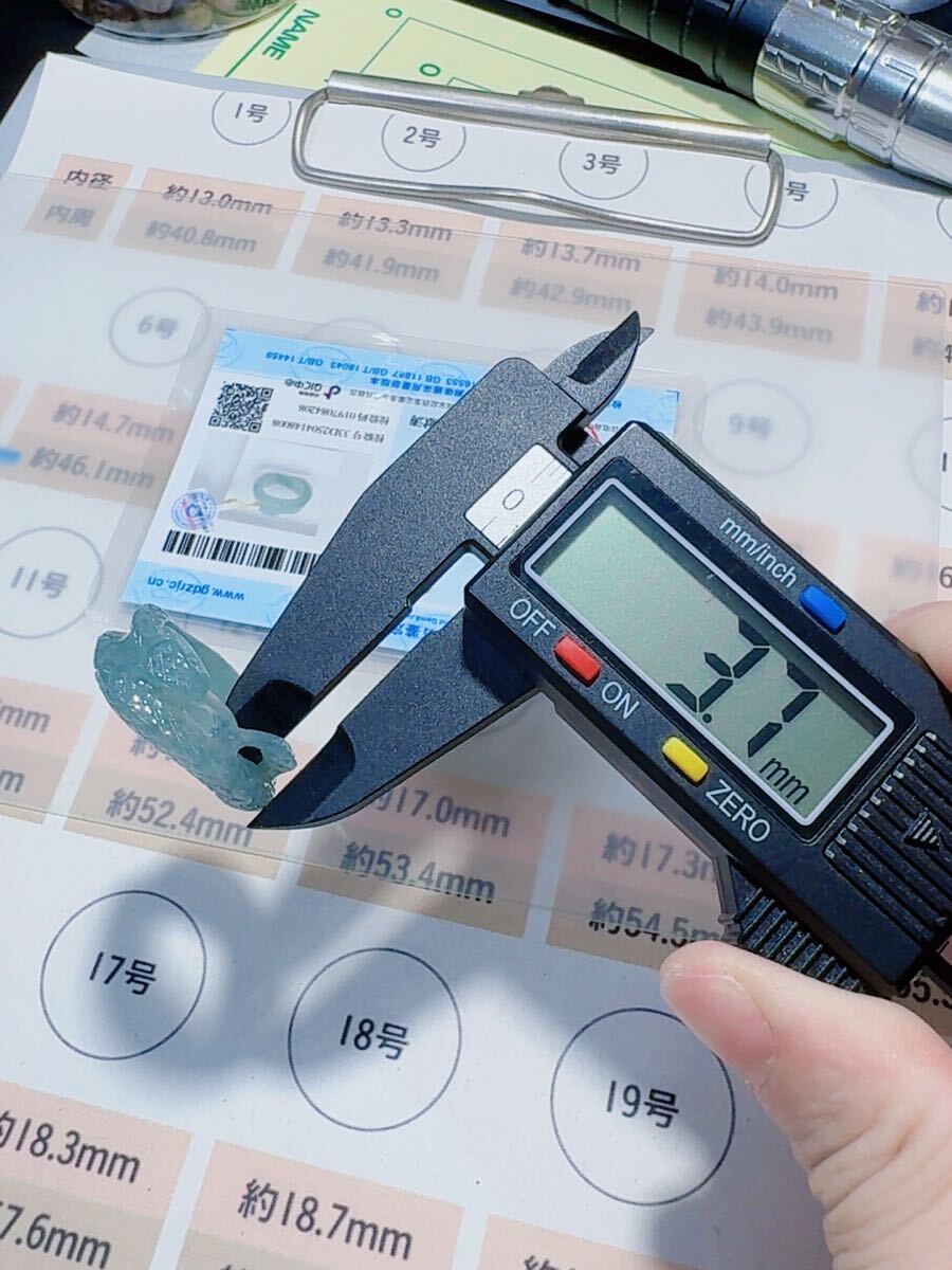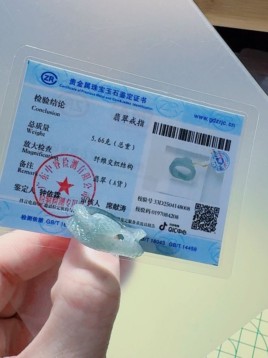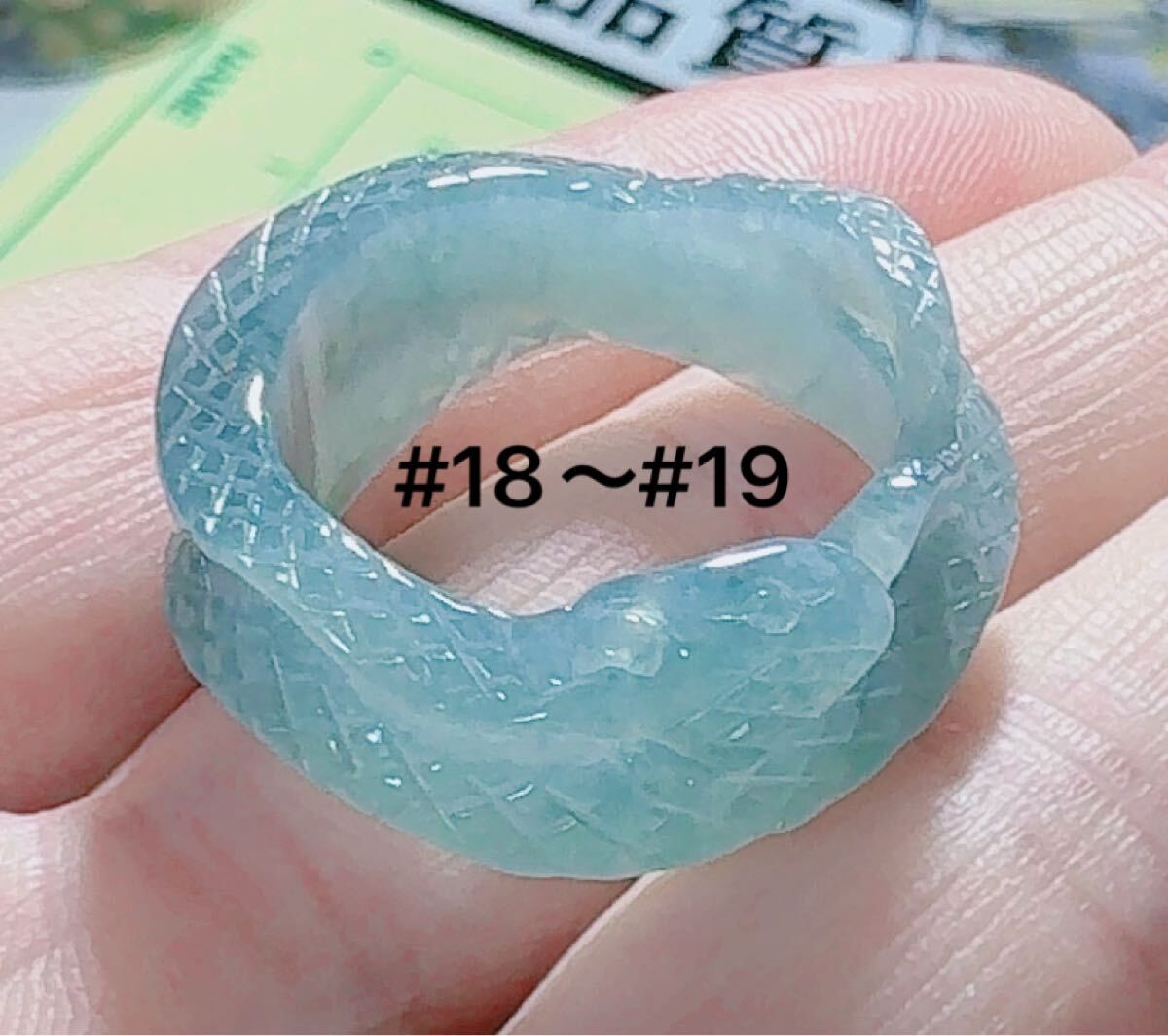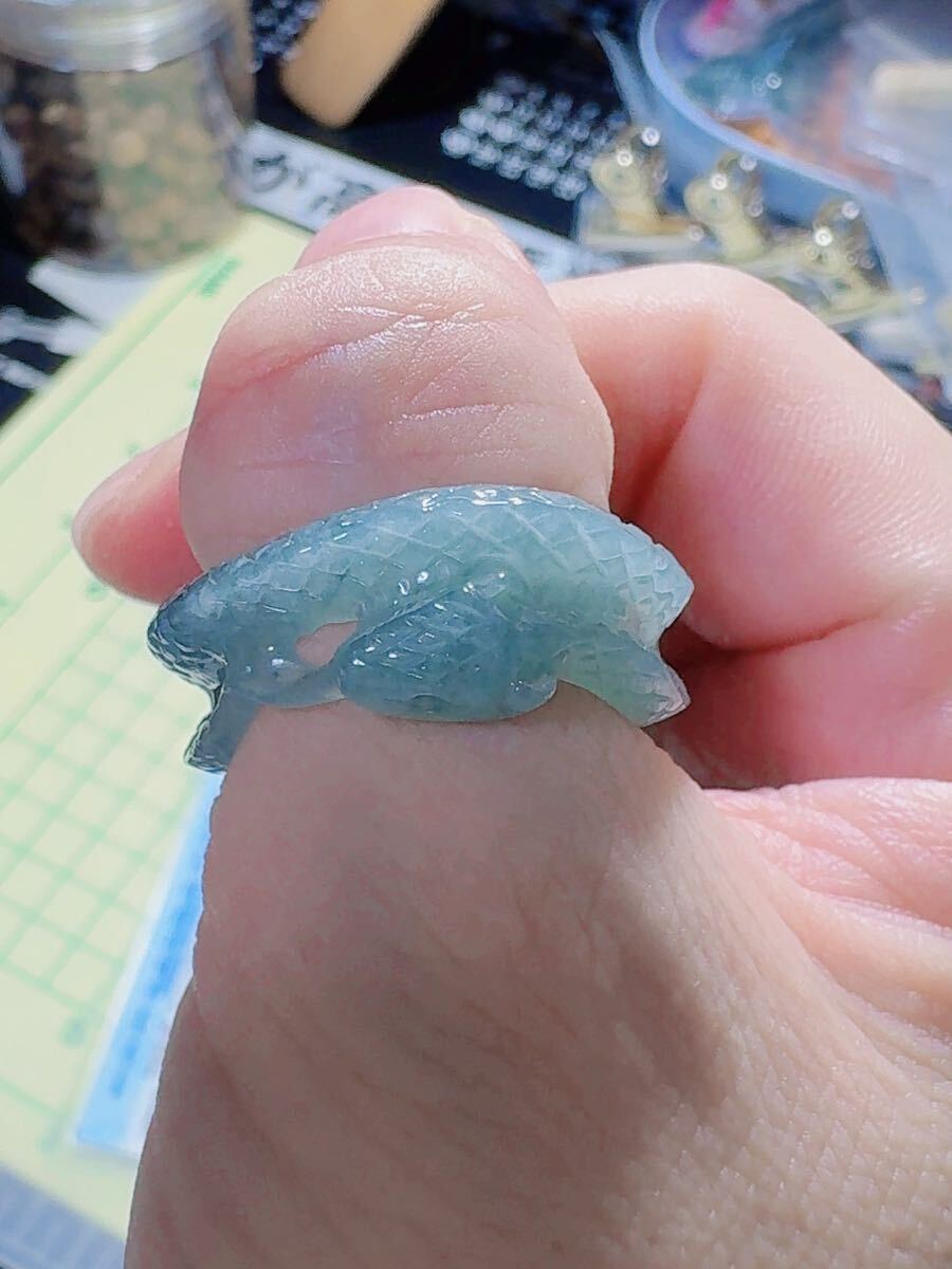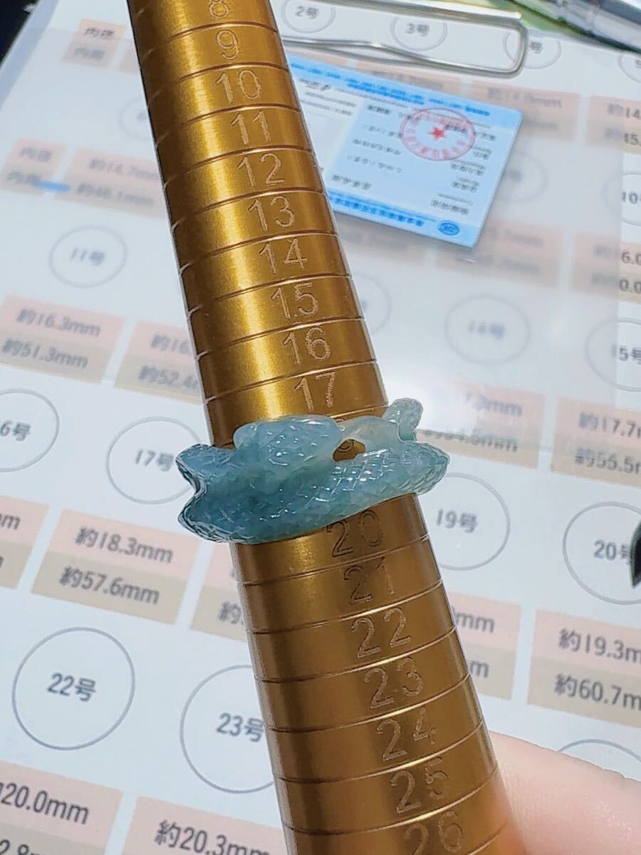 R2-02042天然本翡翠《本物保証》 藍水翡翠 ヘビちゃん指輪約18~19号 一点物 希少 縁起物 お守り 魔除け 昇進 成功 風水 金運財運幸運 幸福