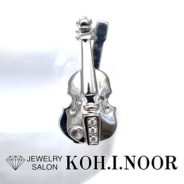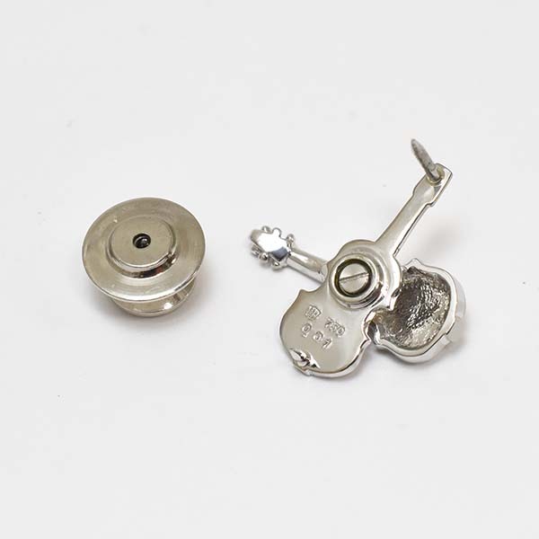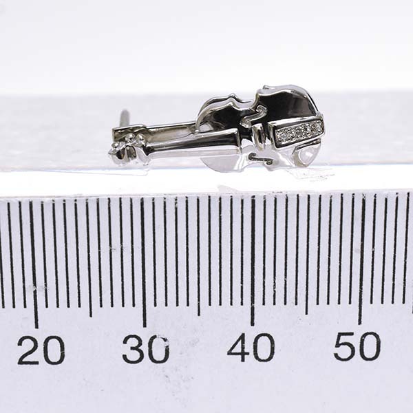 弦楽器をモチーフにしたウォルサムの18金ホワイトゴールド製ピンブローチ。
