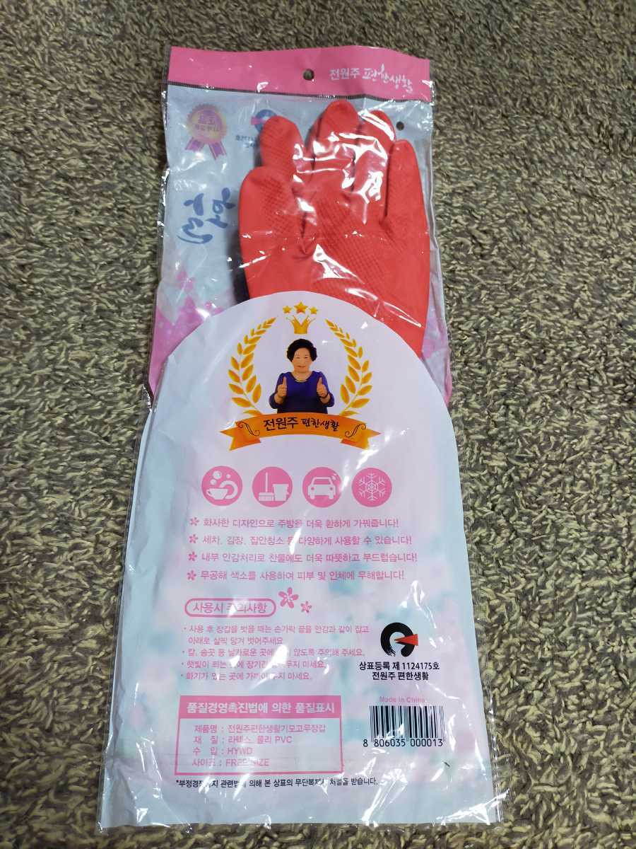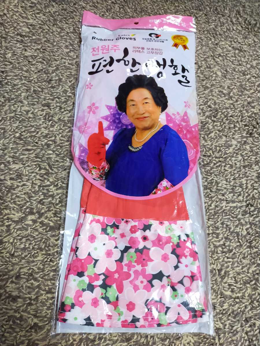 韓国 キッチン ゴム手袋 ロング 花柄 中はフェルト素材で汗でも引っ付きにくい♪