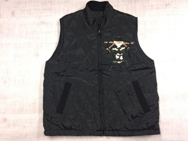 オールド レトロ 古着 女の子 刺繍 リバーシブル中綿ベスト キルティング レディース ポリエステル100% M 黒