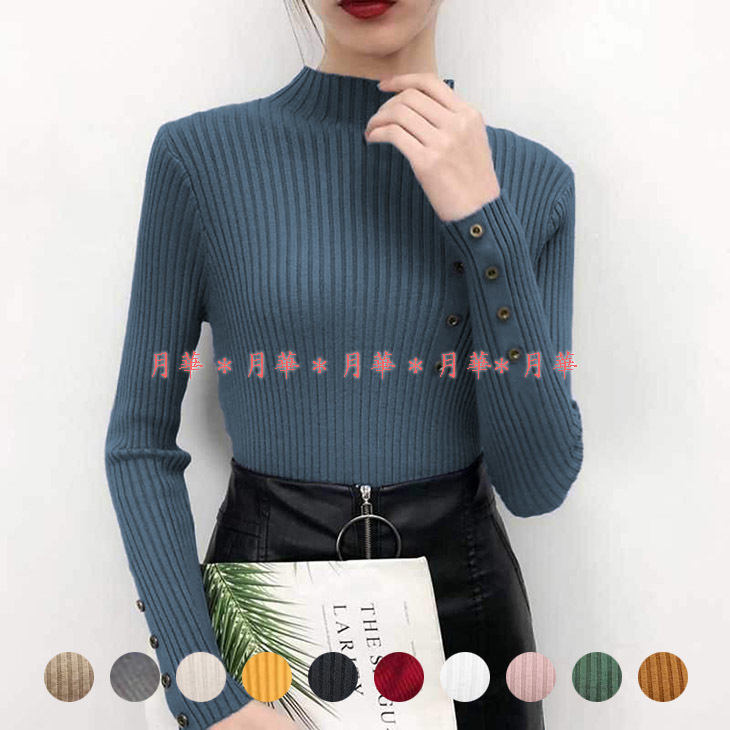 冬 春 秋 カジュアル お出かけ デート きれいめ 薄手 セーター タイト Tシャツ レディース 送料無料 秋服 キレカジ 森ガール ボタン飾り リブ編み