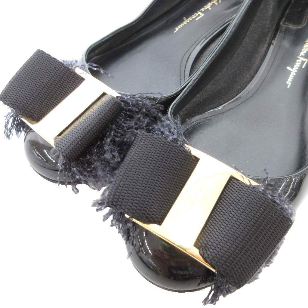 サルヴァトーレフェラガモ Salvatore Ferragamo パンプス フラットシューズ ヴァラリボン エナメル 黒 ブラック 7.5 24.5cm レディース