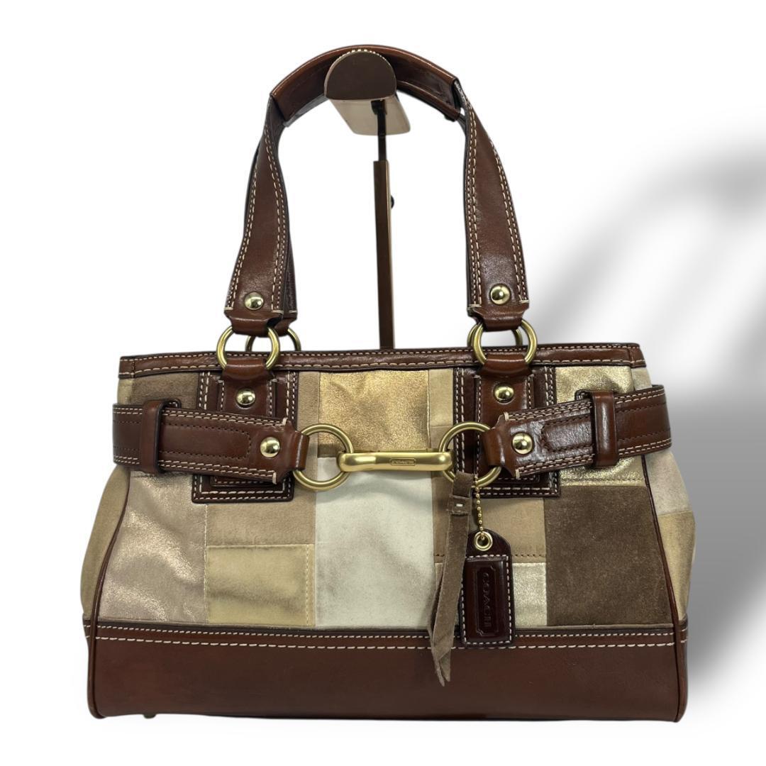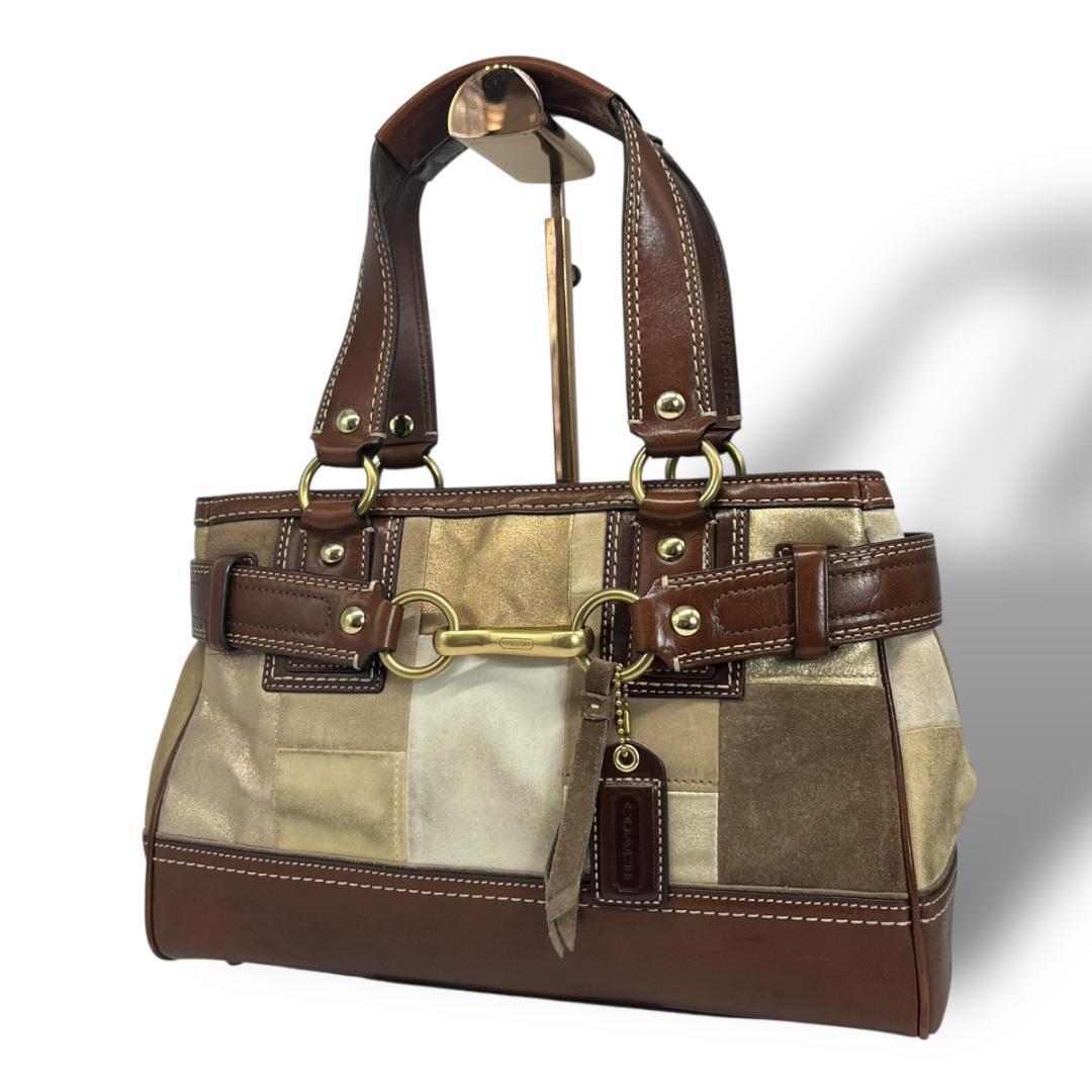 COACH コーチ ハンプトンズ・シリーズのハンドバッグ トートバッグ ブラウン系のパッチワークデザインで色合わせがかわいいです。