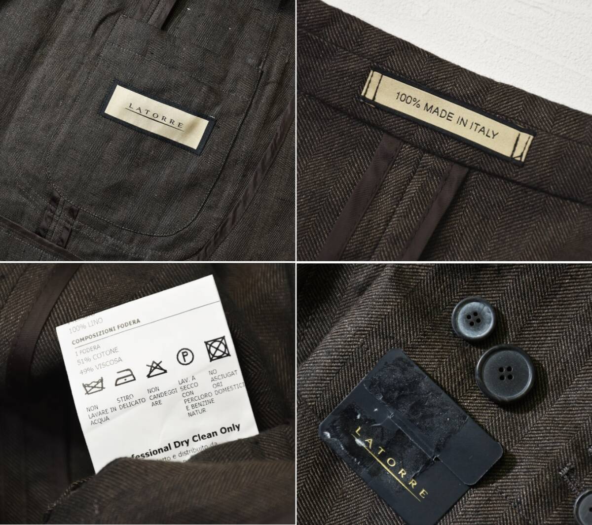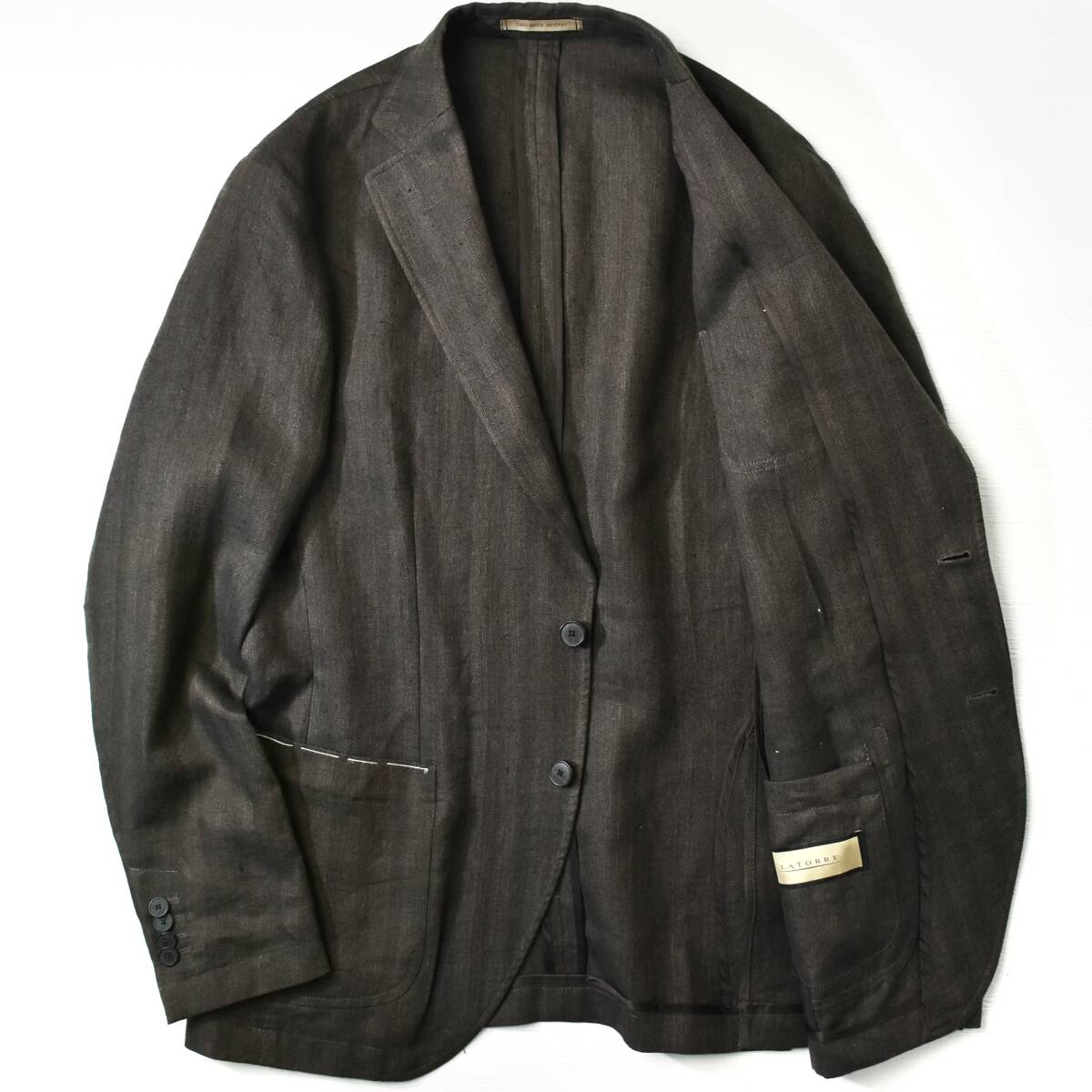 8,6万【LATORRE / ラトーレ 新品】夏の鉄板!リネン100%◇最軽量1枚仕立て◇渋茶で夏コーデを格上げ!軽やかでもエレガント!リネンジャケット