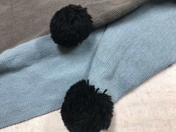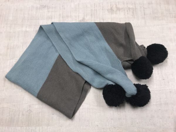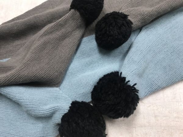 レトロ モード アクセサリー 小物 2トーン バイカラー ボンボン付き ストール マフラー レディース 水色/グレー です。
