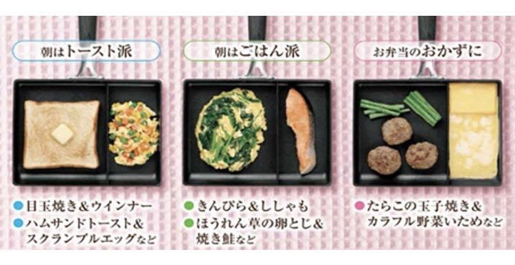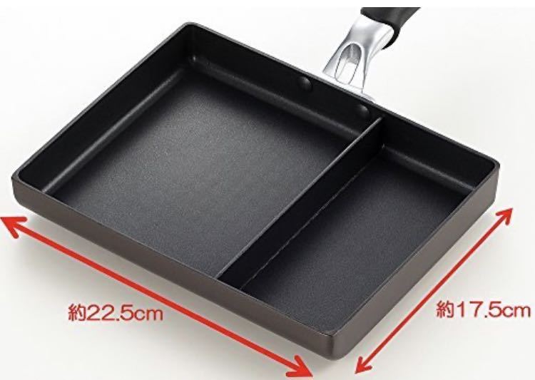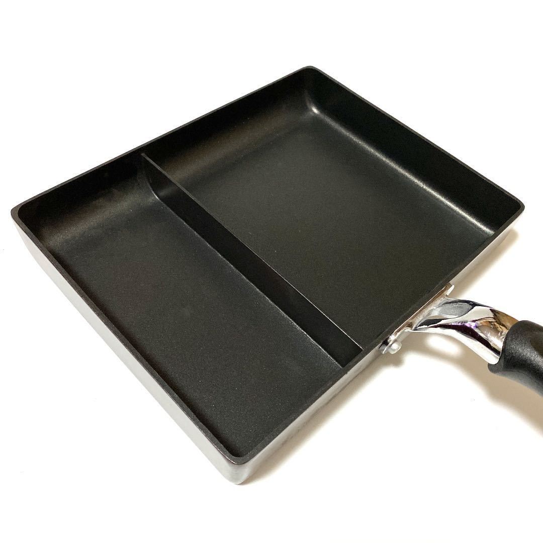 これは便利、玉子焼きと炒めが同時に作れる画期的なエッグパン 忙しい朝の時間短縮フライパン 仕切りに高さがあり具材がこぼれにくく、炒めものもラクラク 卵1個でお弁当にピッタリのミニ玉子焼きも厚焼き玉子もこれ1個でOK 熱回りの良い厚手のアルミキャスト製 電磁調理器100V・200V対応 朝ごはんやお弁当にも、これ1つでいろいろ調理。シングルライフにも活躍しそう