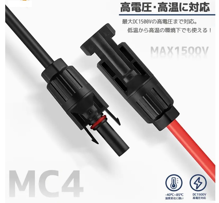 MC4コネクタ圧着ケーブル5m(赤5m+黒5m)になります。