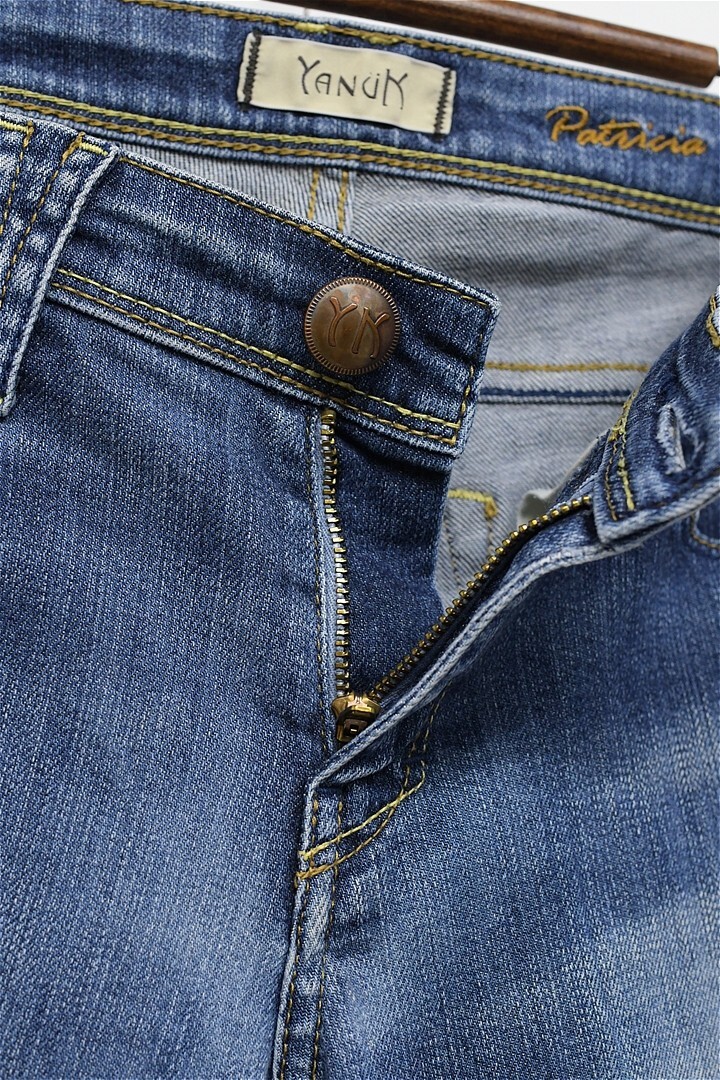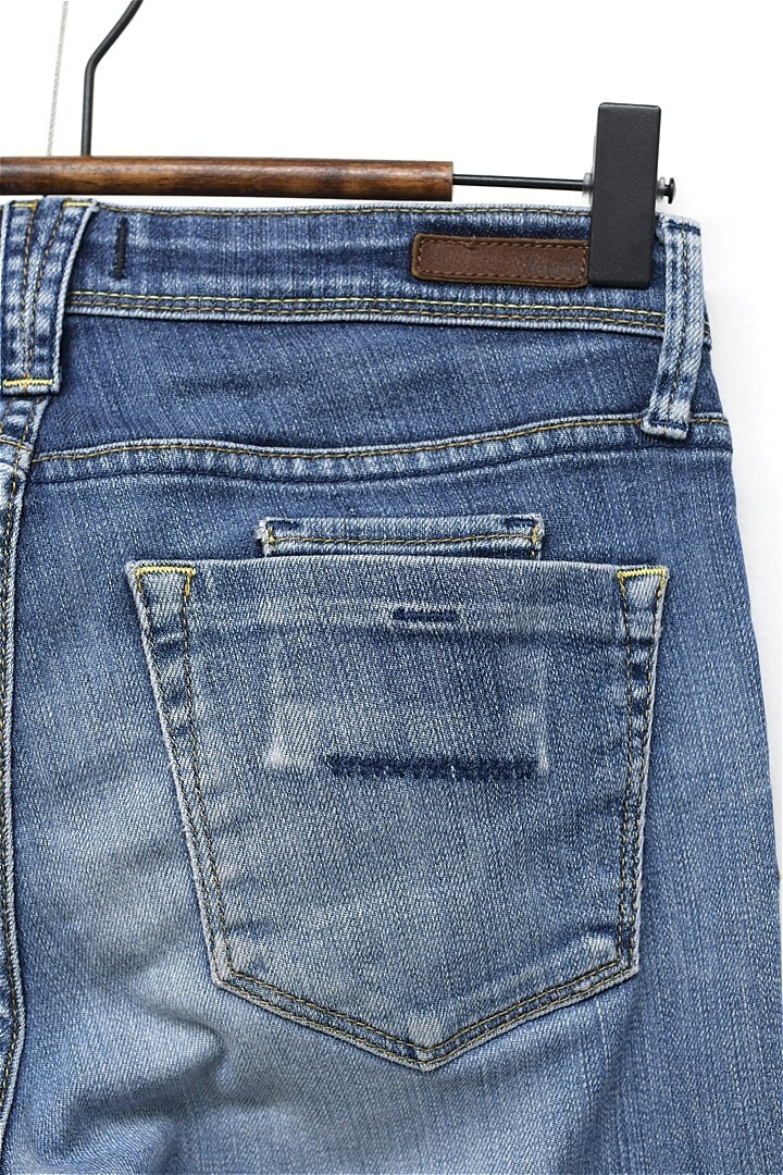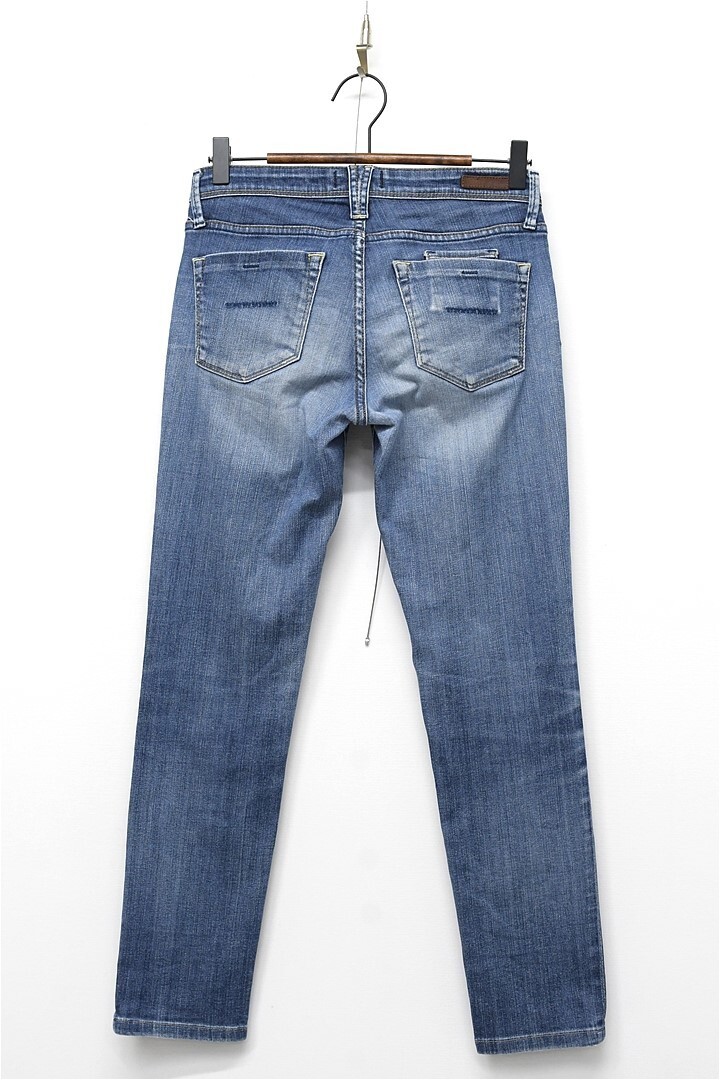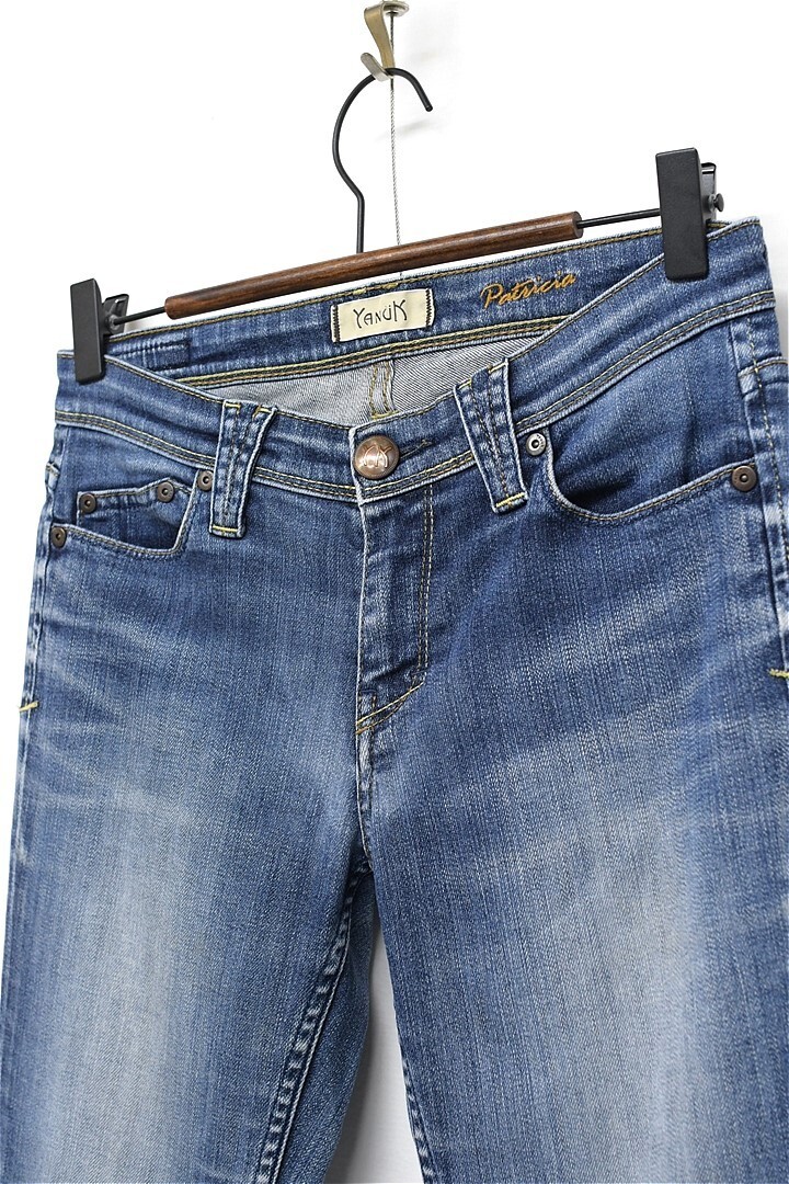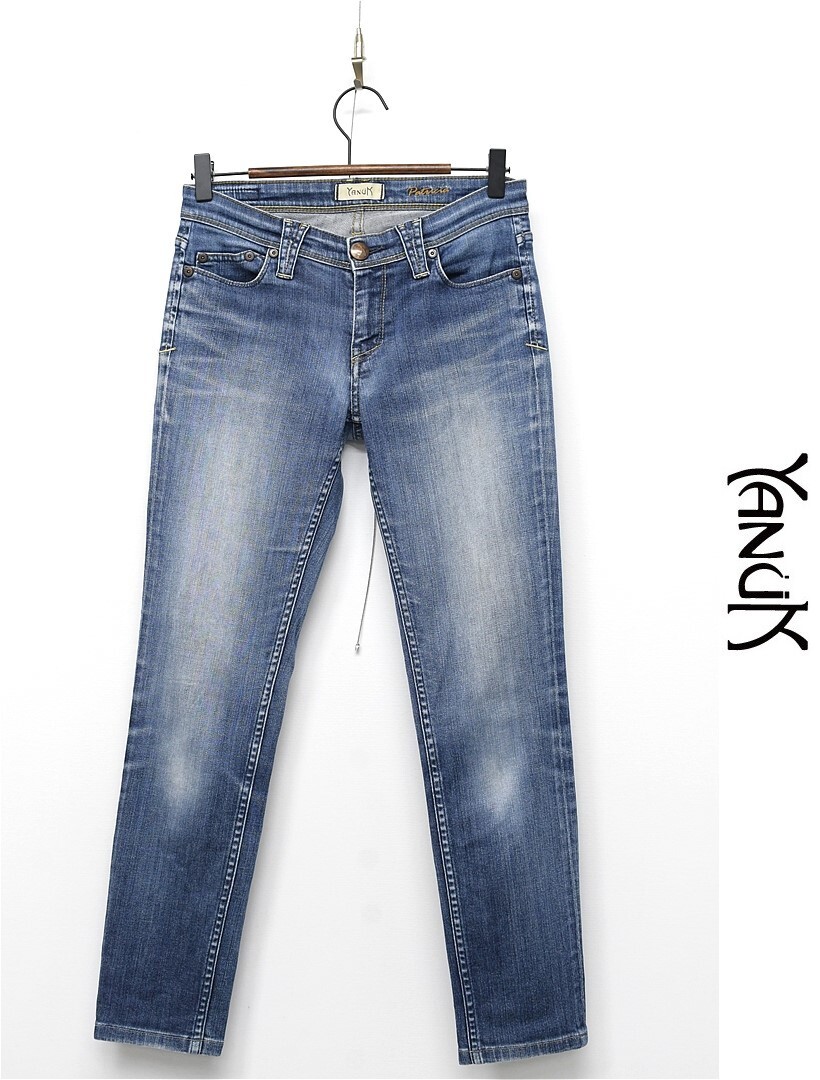 K440/YANUK PATRICIA パトリシア スキニーデニム ジーンズ パンツ スリム タイト レザーパッチ ストレッチ 27 L 青