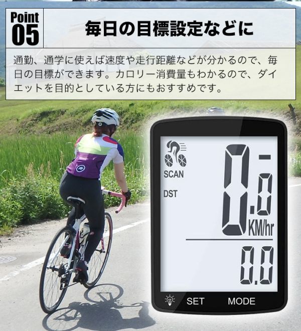 通勤、通学に使えば速度や走行距離などが分かるので、毎日の目標ができます。カロリー消費量もわかるので、ダイエットを目的としている方にもおすすめです。