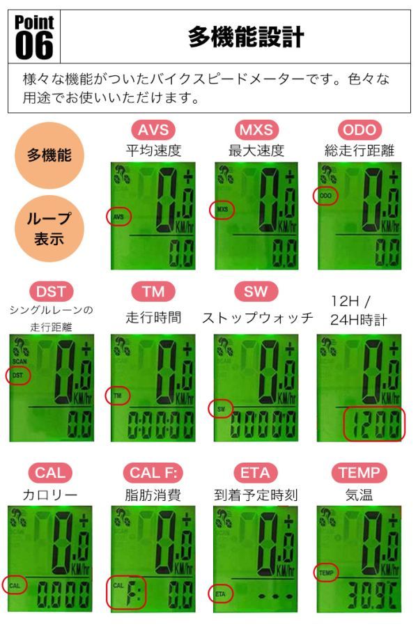 19種類の機能がついたバイクスピードメーターです。さまざまな用途でお使いいただけます。