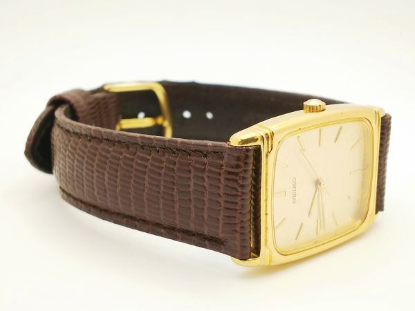 お洒落な形状のベゼルが特徴の「シャリオ」、紳士用のドレスクオーツウォッチです。