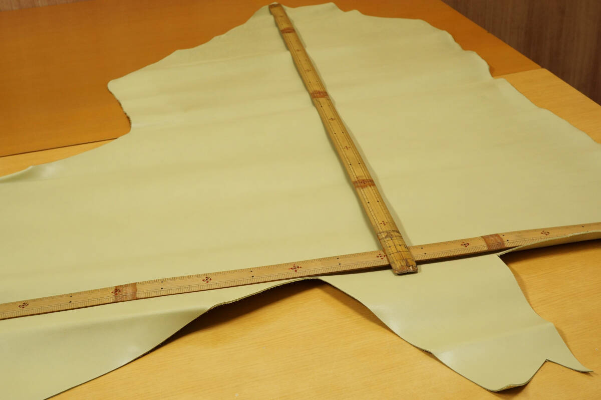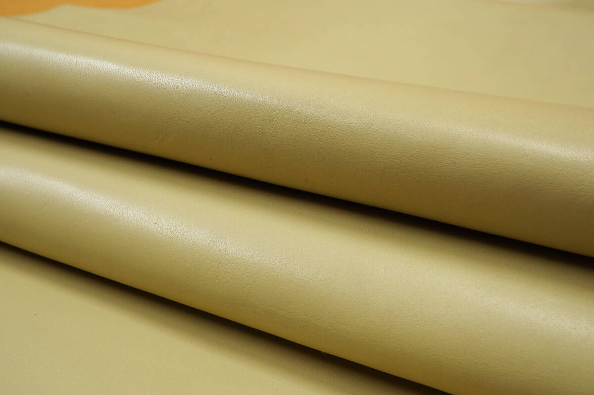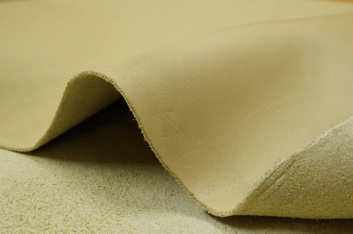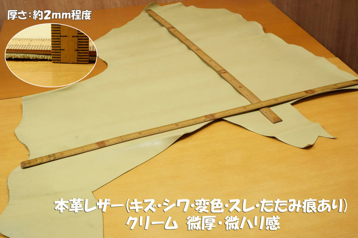 本革レザー(キズ・シワ・変色・たたみ痕あり品) クリーム 微厚ややソフト微ハリ感 レザーバッグ レザークラフト レザー小物 リメイク