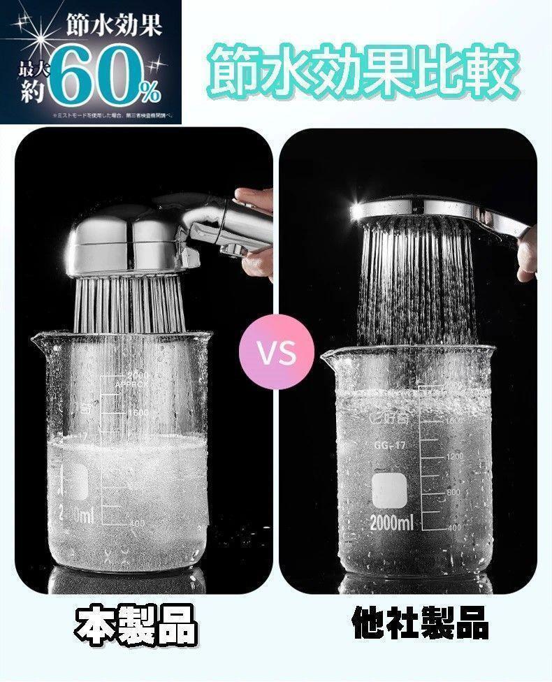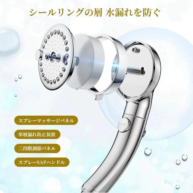 【2個セット】ミスト シャワーヘッド プレミアム ナノバブル 970万個/ml 高水圧 水流 3タイプ 止水機能付き 最大60% 節水 取付簡単 4種類アダプター付