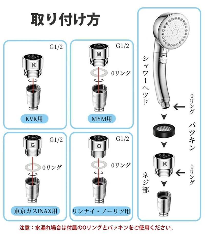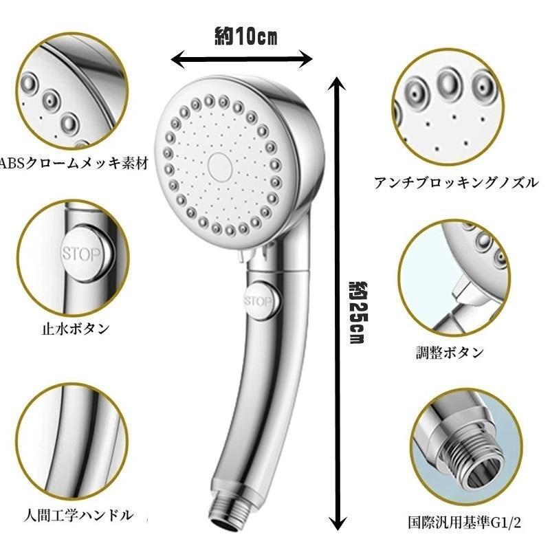 商品説明【2個セット】ミスト シャワーヘッド プレミアム ナノバブル 970万個/ml 高水圧 水流 3タイプ 止水機能付き 最大60% 節水 取付簡単 4種類アダプター付