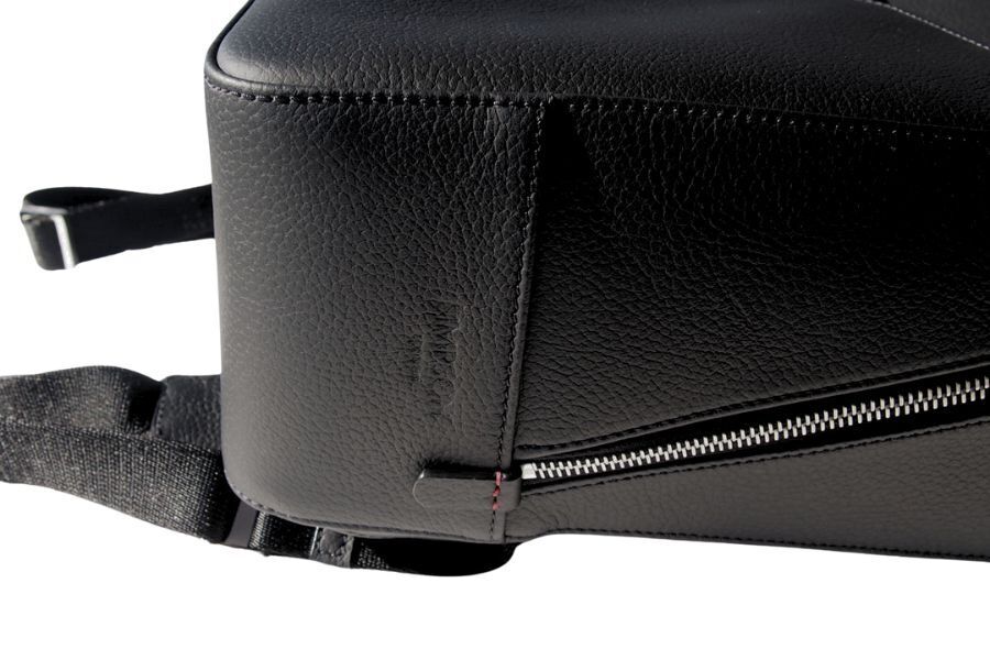 最高品質で普遍的な価値観をもつグレインレザー(牛革)をベースに、直線的なフォルムのデザインになっていて、モダンな雰囲気。