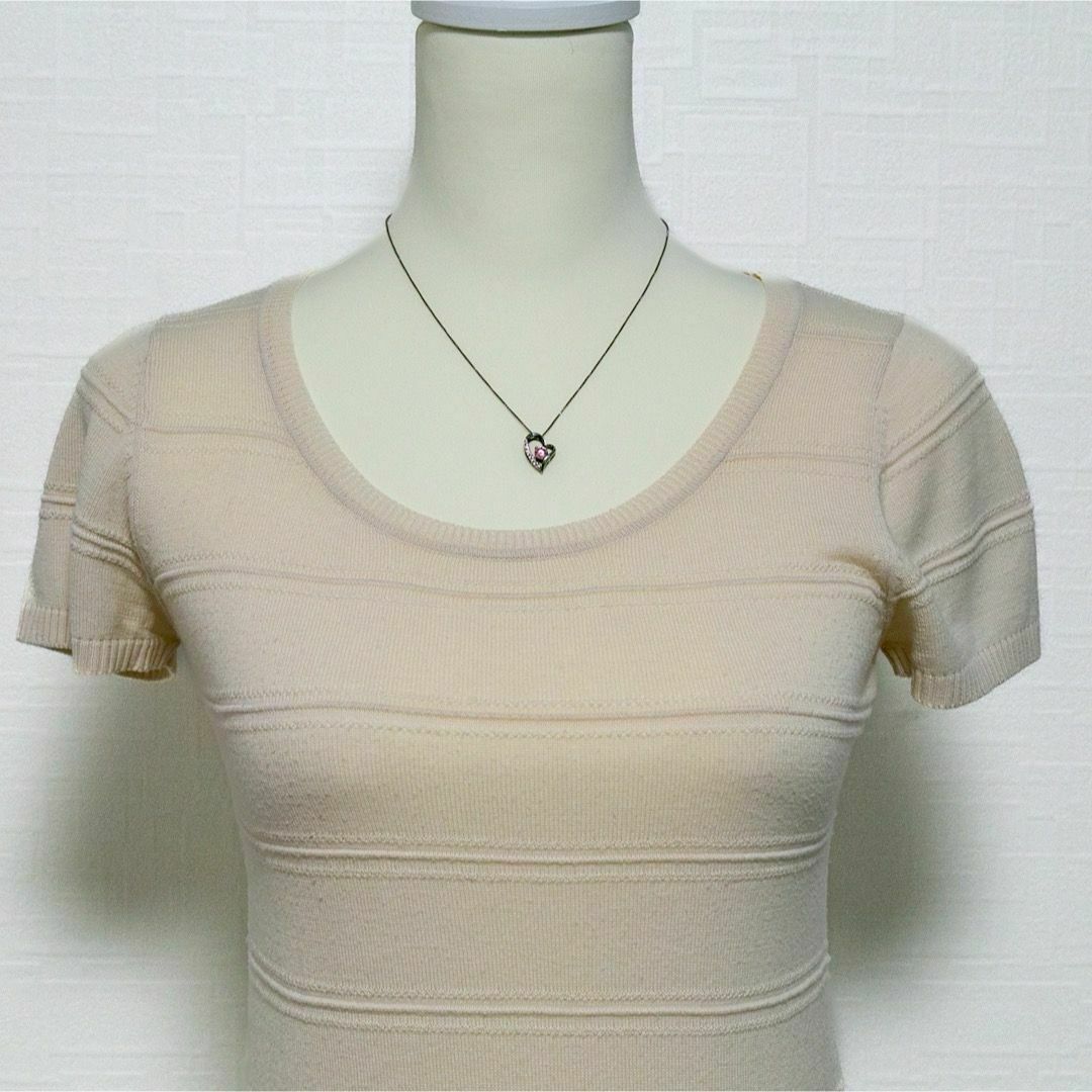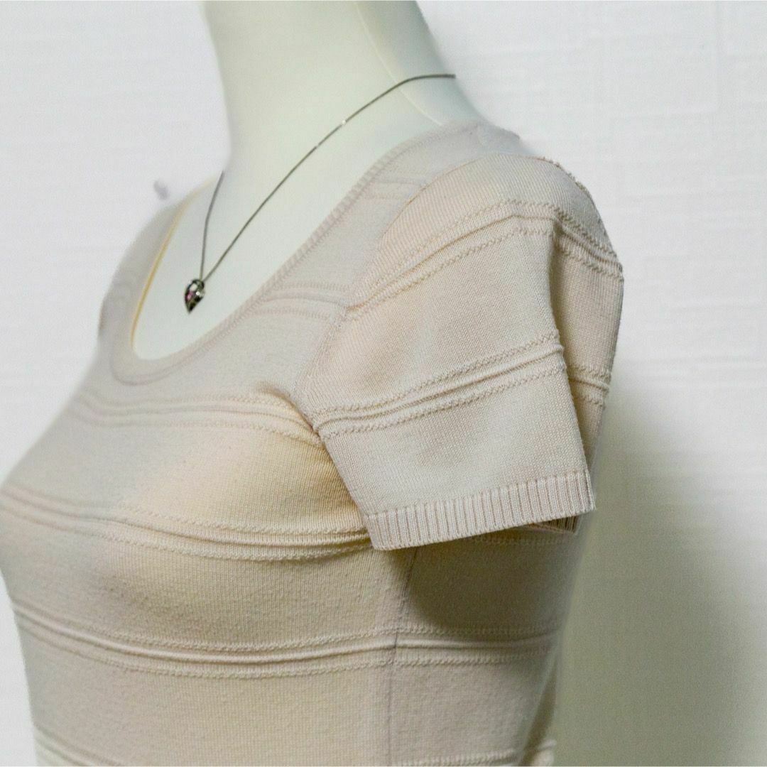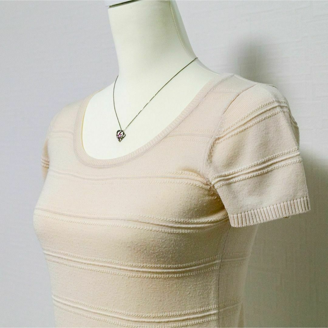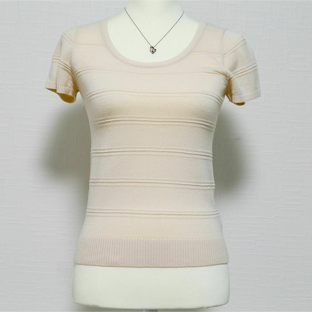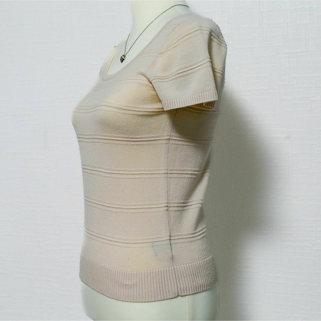 半袖ニットセーター ニットソー プルオーバー ベージュ クルーネック 薄手