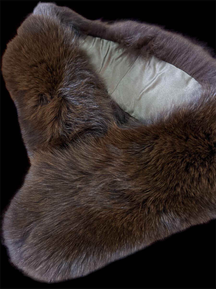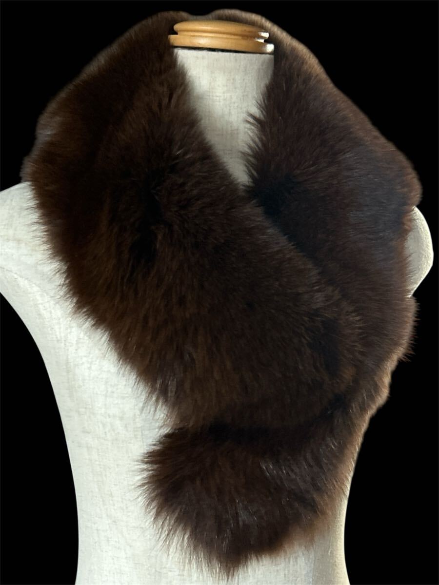 毛並みも綺麗なお品でブラウンのお色がとても素敵なティペットになります。