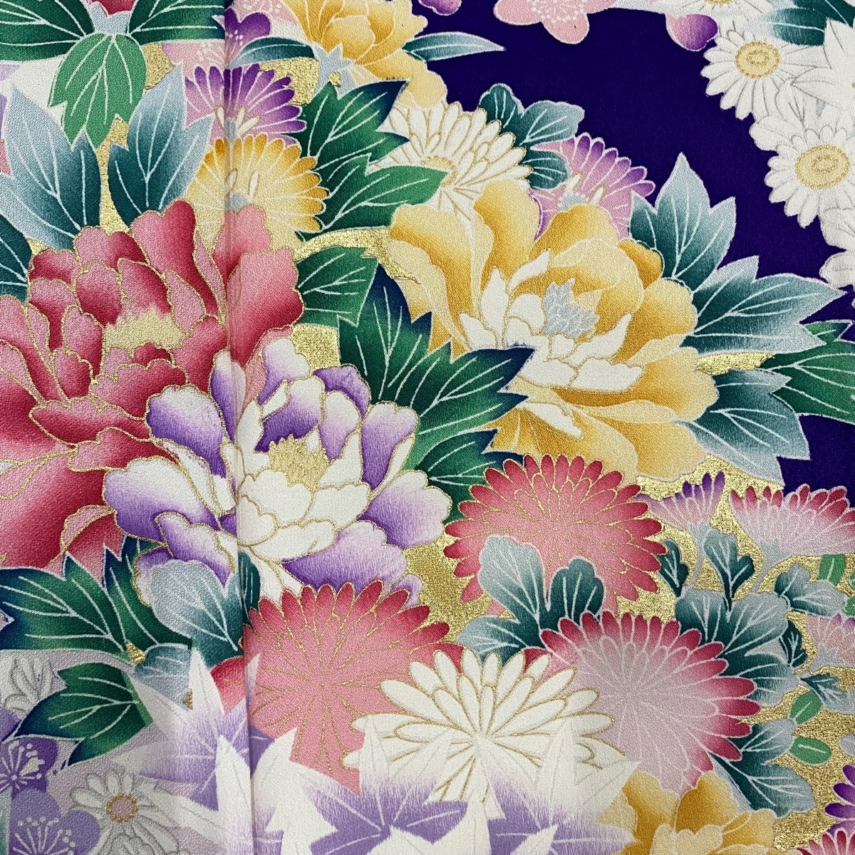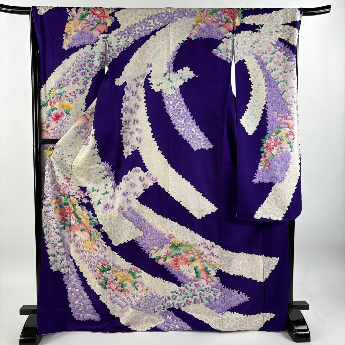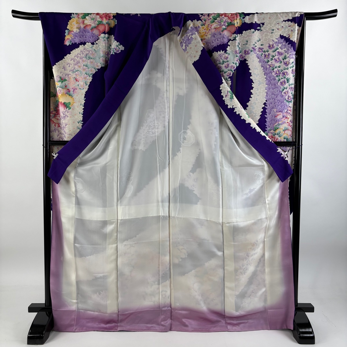 | 振袖 秀品 牡丹 菊 金彩 紫 袷 身丈171 裄丈68 L 正絹 【中古】 |