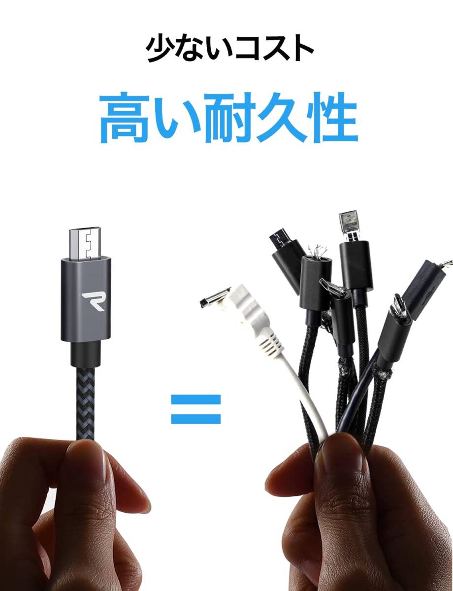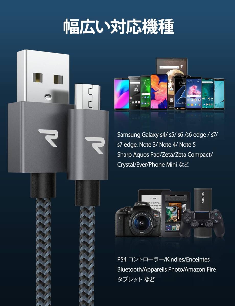 【2M/黒】マイクロ usb ケーブル Rampow Micro USB ケーブル QC3.0急速充電 高速データ転送 ps4コントローラー充電器 Android多機種スマホ対応 android充電ケーブル usbケーブル ps4 充電ケーブル