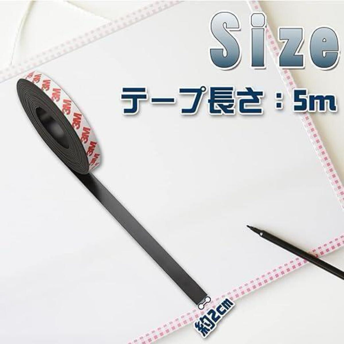 マグネットテープ 粘着テープ シール 強力 フリーカット可能 プラスチック ガラス 多用途 (2cm×5m)