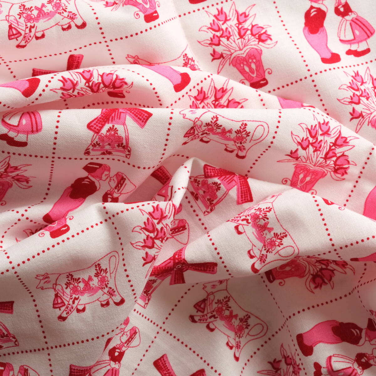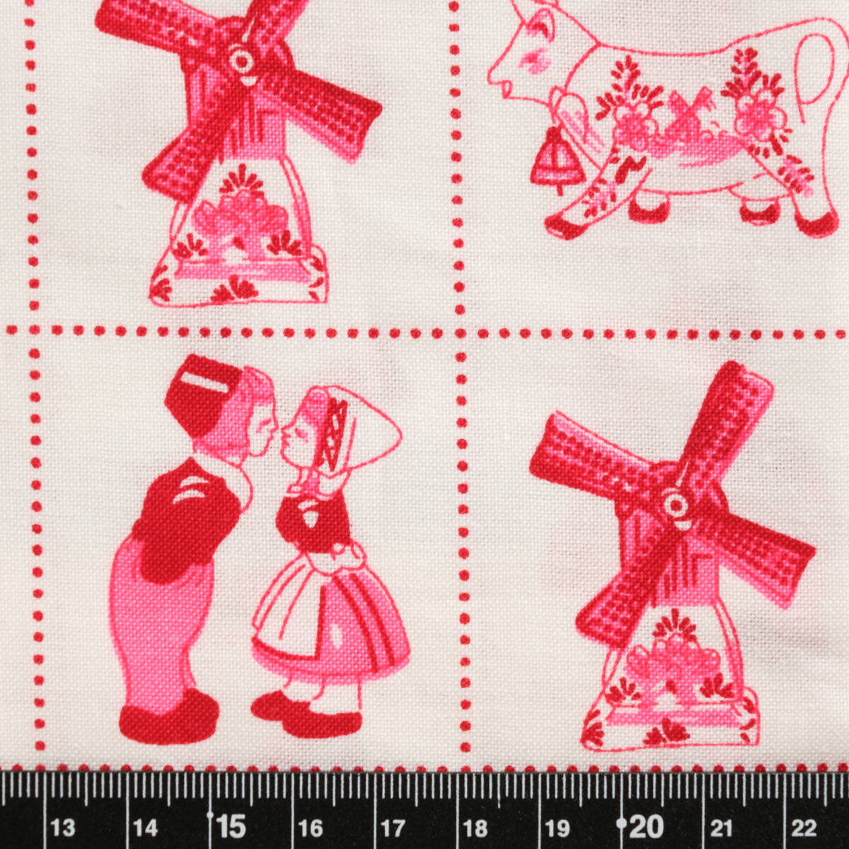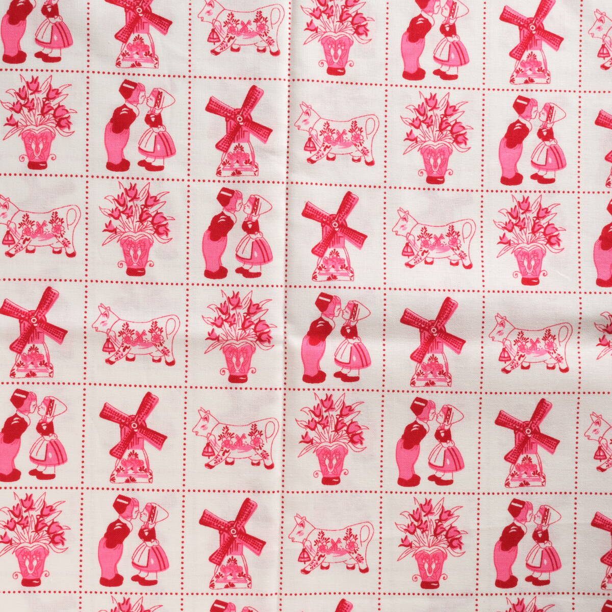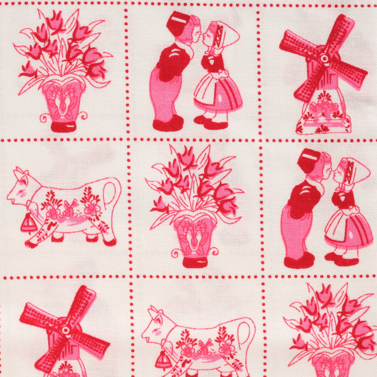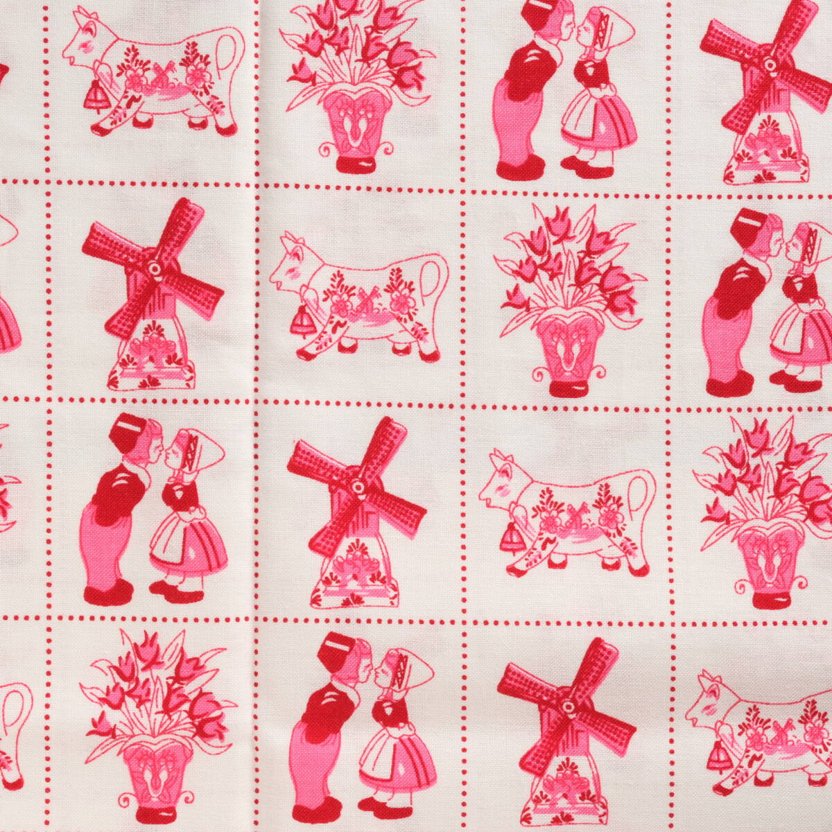 オランダ 風車 牛 花 45×68 はぎれ コットン 輸入生地 プリント生地 c ホワイト レッド