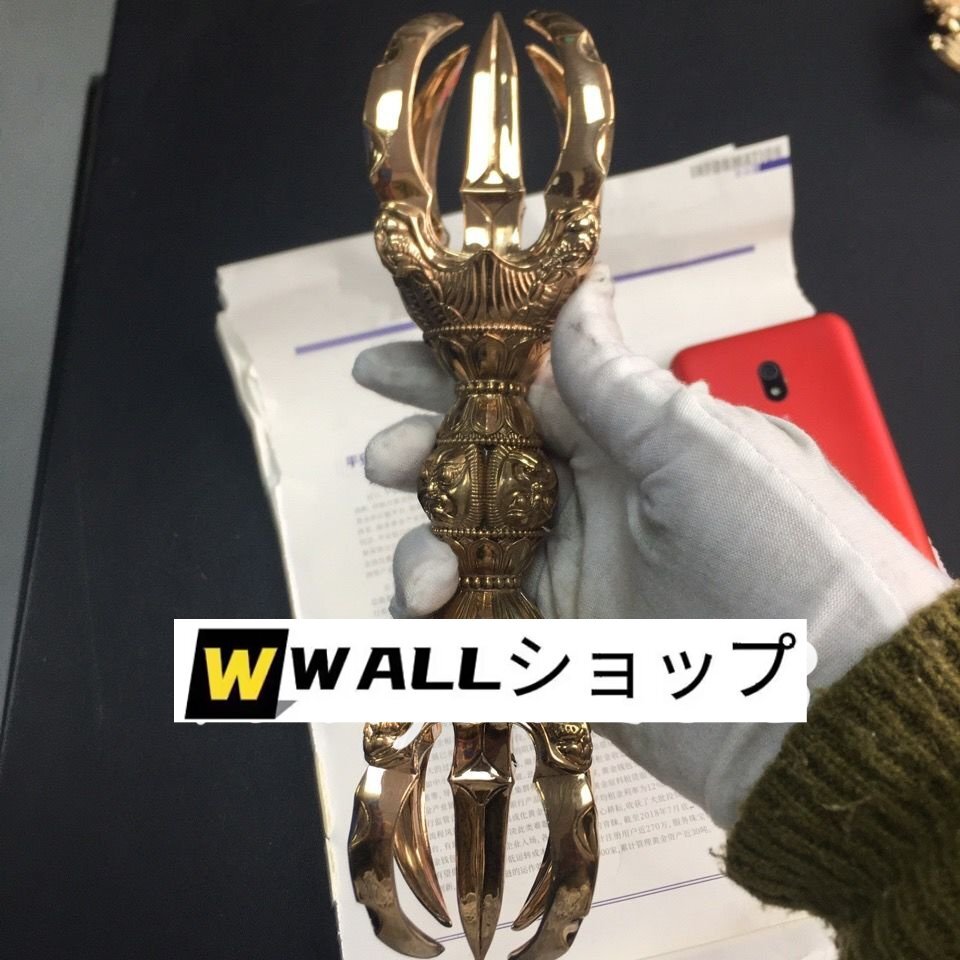「密教法具 寺院用仏具」真言宗 金剛杵 鬼面型五鈷杵 仏具 仏教芸術品 銅製 磨き仕上げ 長さ23cm