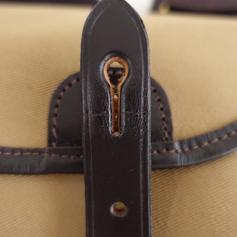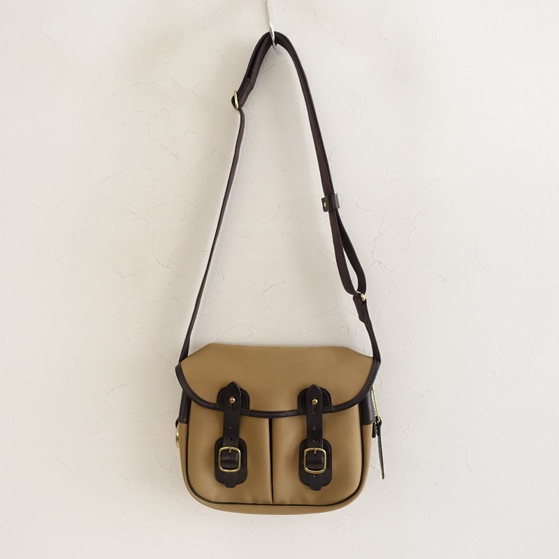Bradyのnorfolkフィッシングショルダーバッグです。カラーはカーキで、開口はベルト留めのフラップタイプで、オープンポケットが3個ございます。素材は丈夫なツイル素材で、ショルダーストラップは長さ調節可能です。定価(メーカー希望小売価格)61,600円のお品物です。 |
