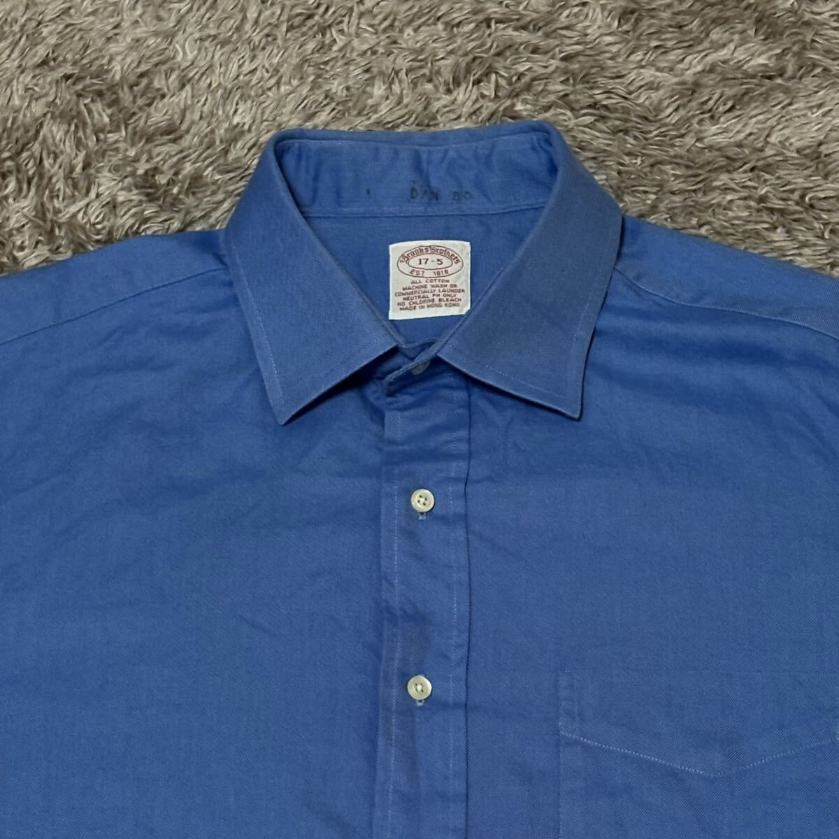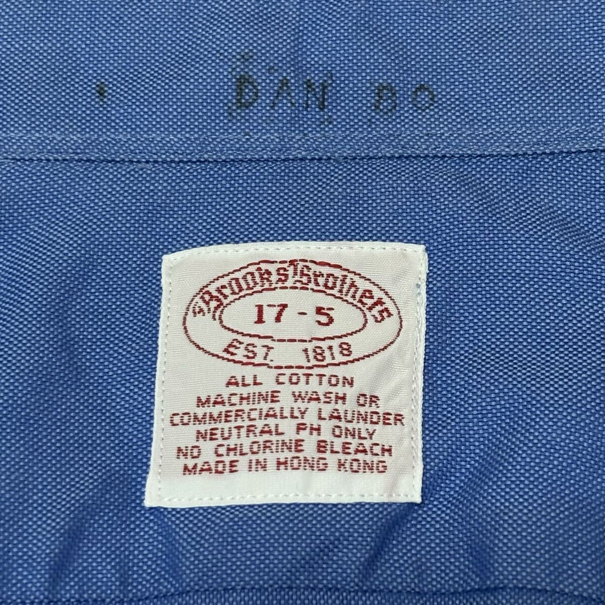 Brooks Brothers(ブルックスブラザーズ)のヴィンテージ長袖シャツです。1980年代後半〜1990年代前半に製造された希少な香港製モデル。タグは当時特有の赤文字ロゴ入りで、17-5(XL相当)サイズ表記。クラシックな胸ポケット付きデザインです。