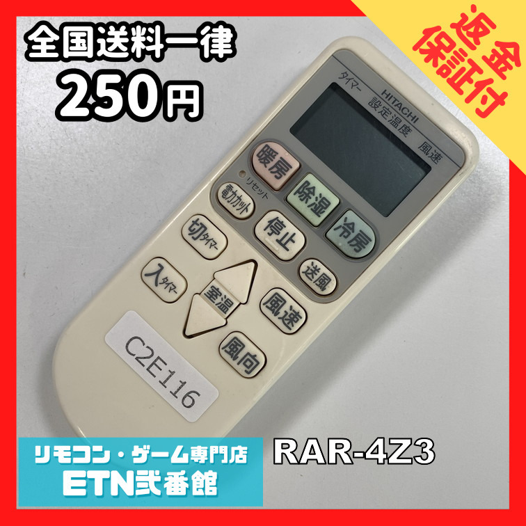 C2E116 【送料250円】エアコン リモコン / 日立 ヒタチ HITACHI RAR-4Z3 冷房 暖房 動作確認済み★即発送★