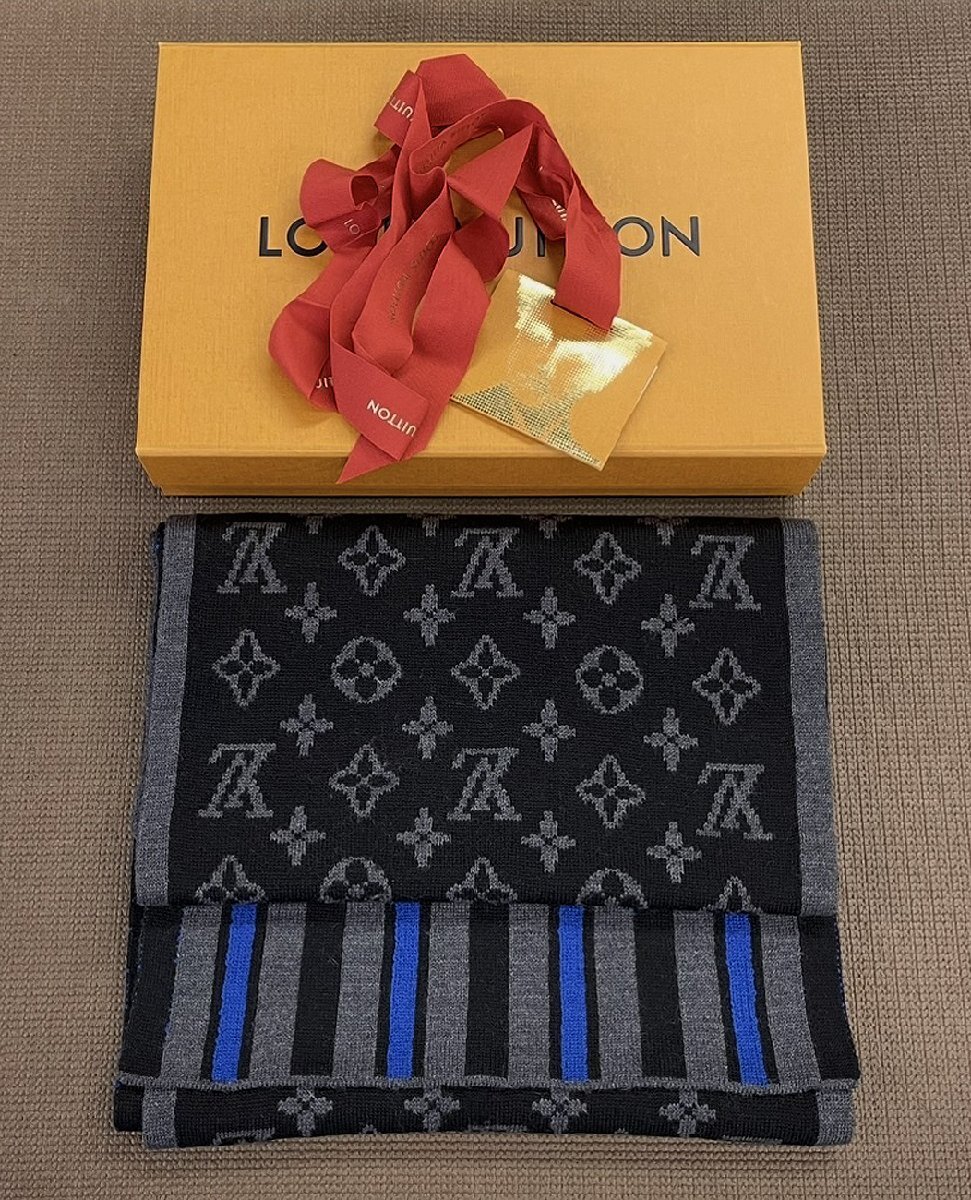 LOUIS VUITTON M76819 エシャルプ ニット モノグラム ストライプ マフラー ウール100% ルイヴィトン
