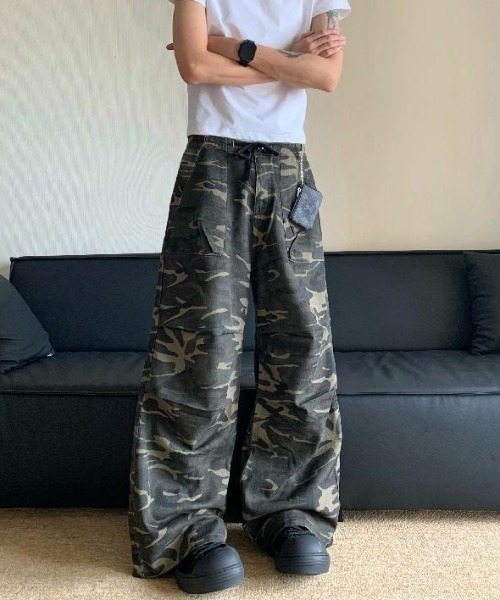 キーワード:カーゴパンツ メンズ カモフラージュ柄 ストレート フルレングス ワイドパンツ