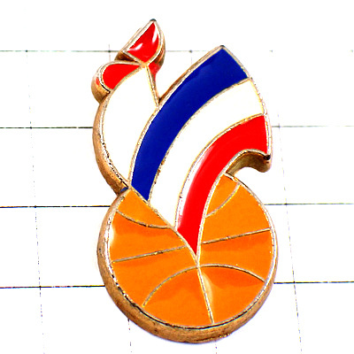 "ピンバッジ・ニワトリ雄鶏バスケットボール球トリコロール青白赤 FFB FEDERATION-FRANCAISE-DE-BASKET FRANCE"の商品説明 | |