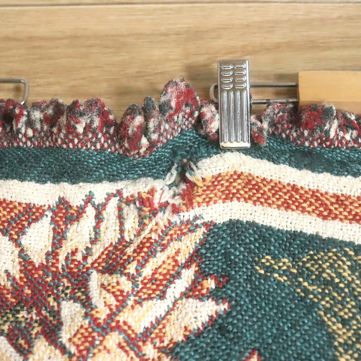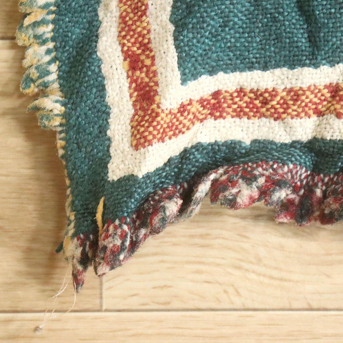 中古品です。使用感があります。糸の飛び出し、穴あき、フリンジに絡まりがあります。