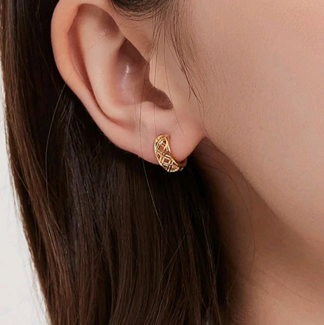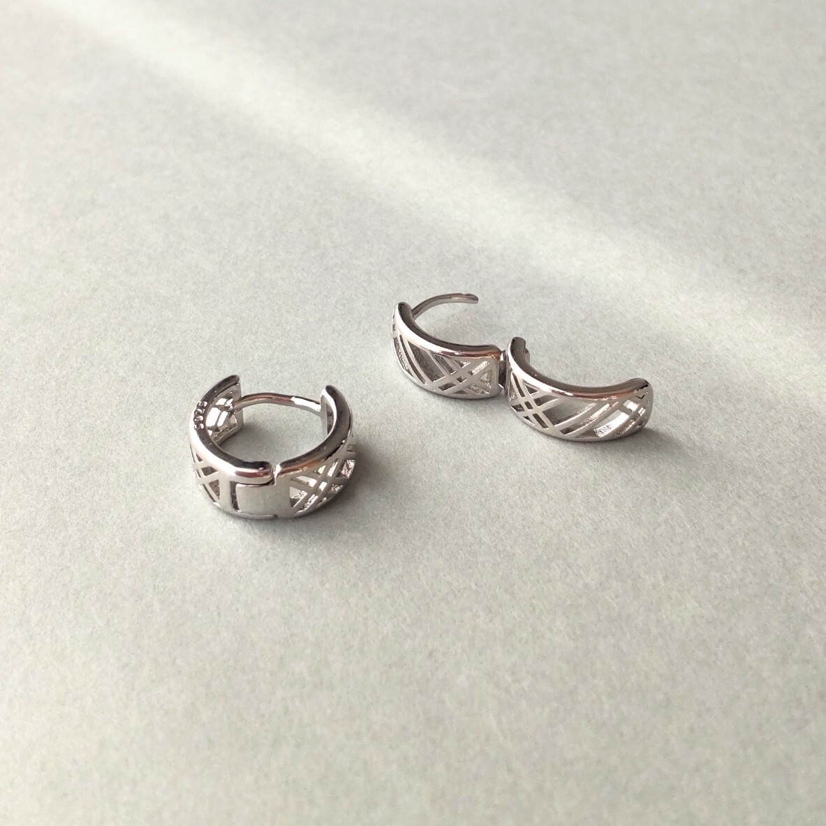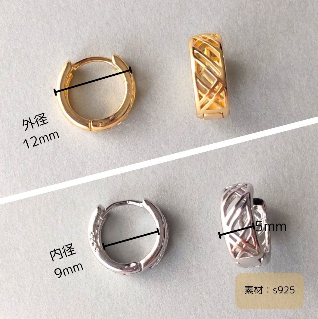 ワイドなフープピアスでありながら、透かしデザインが施されているため、軽やかで上品な印象を与えます。