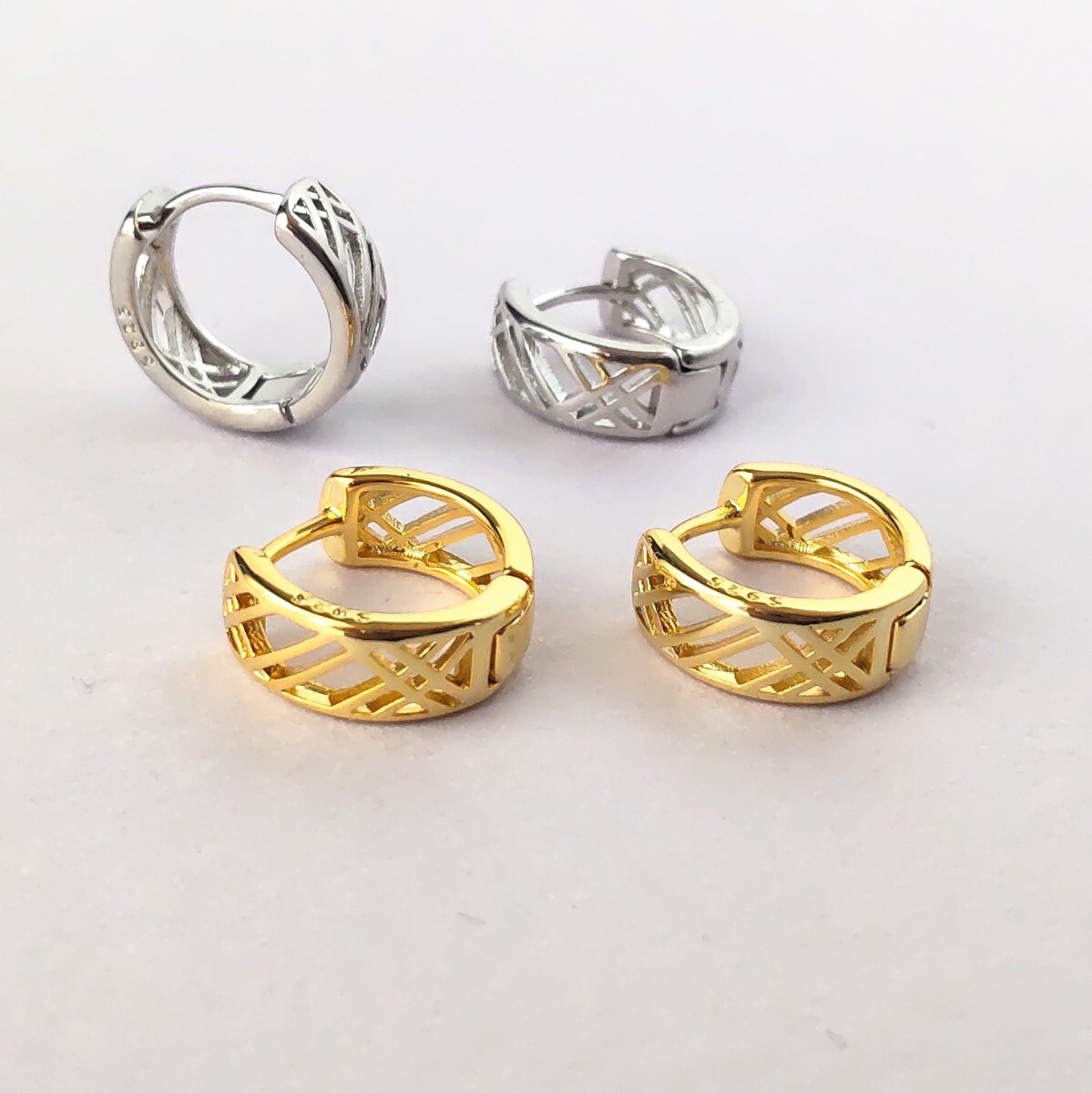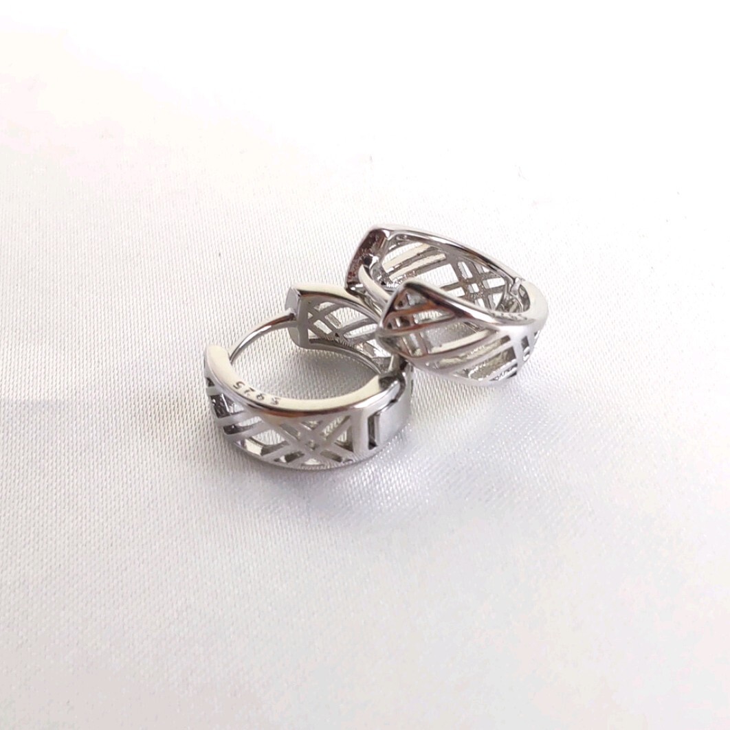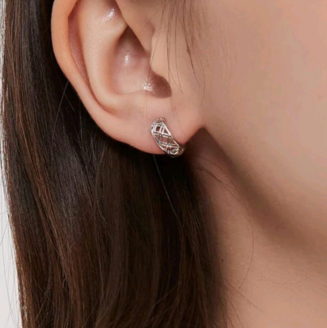 ワイドなフープピアスでありながら、透かしデザインが施されているため、軽やかで上品な印象を与えます。