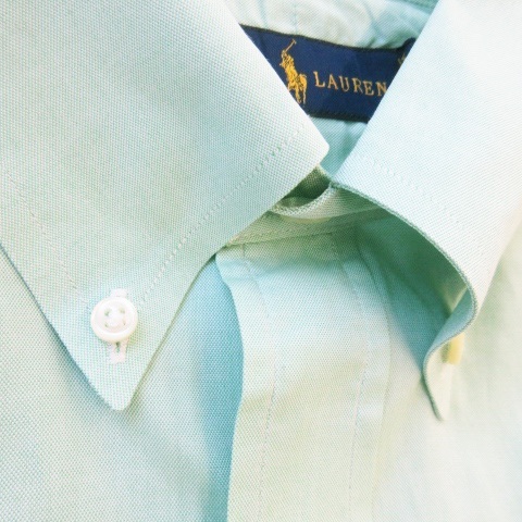 ラルフローレン RALPH LAUREN ワイシャツ Yシャツ ボタンダウン 長袖 コットン ワンポイント ポニーロゴ刺繍 14.5 S 緑 ミントグリーン
