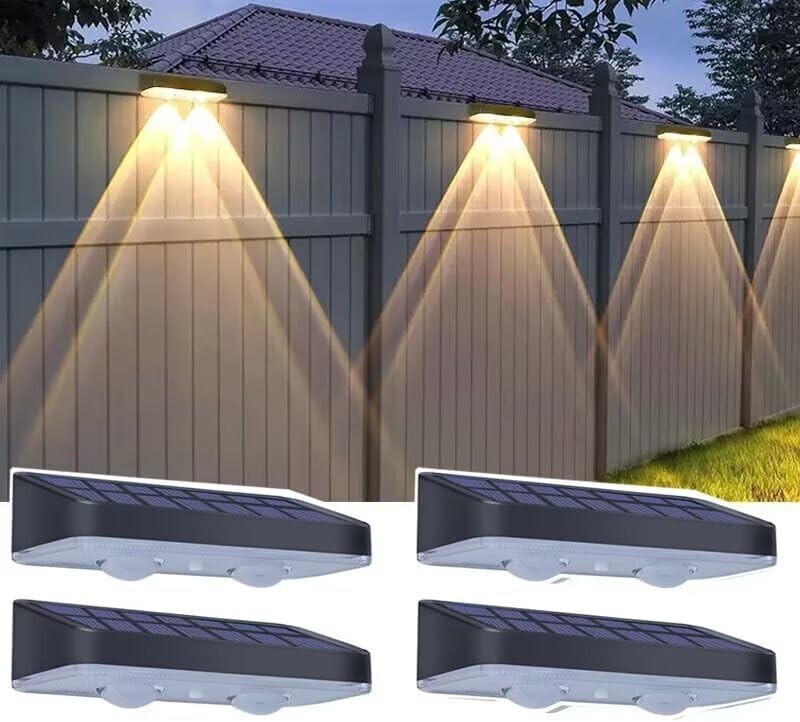 「2025業界新版」HONGYAN ソーラーライト 屋外 フェンスライト センサーライト 玄関ライト ガーデンライト 1500mAh大容量電池 超高輝度 表札灯 電源不要 ソーラー 自動点灯 自動消灯 IP65防水 取付簡単 庭 階段 通路 バックヤード 玄関等に適用 4個セット