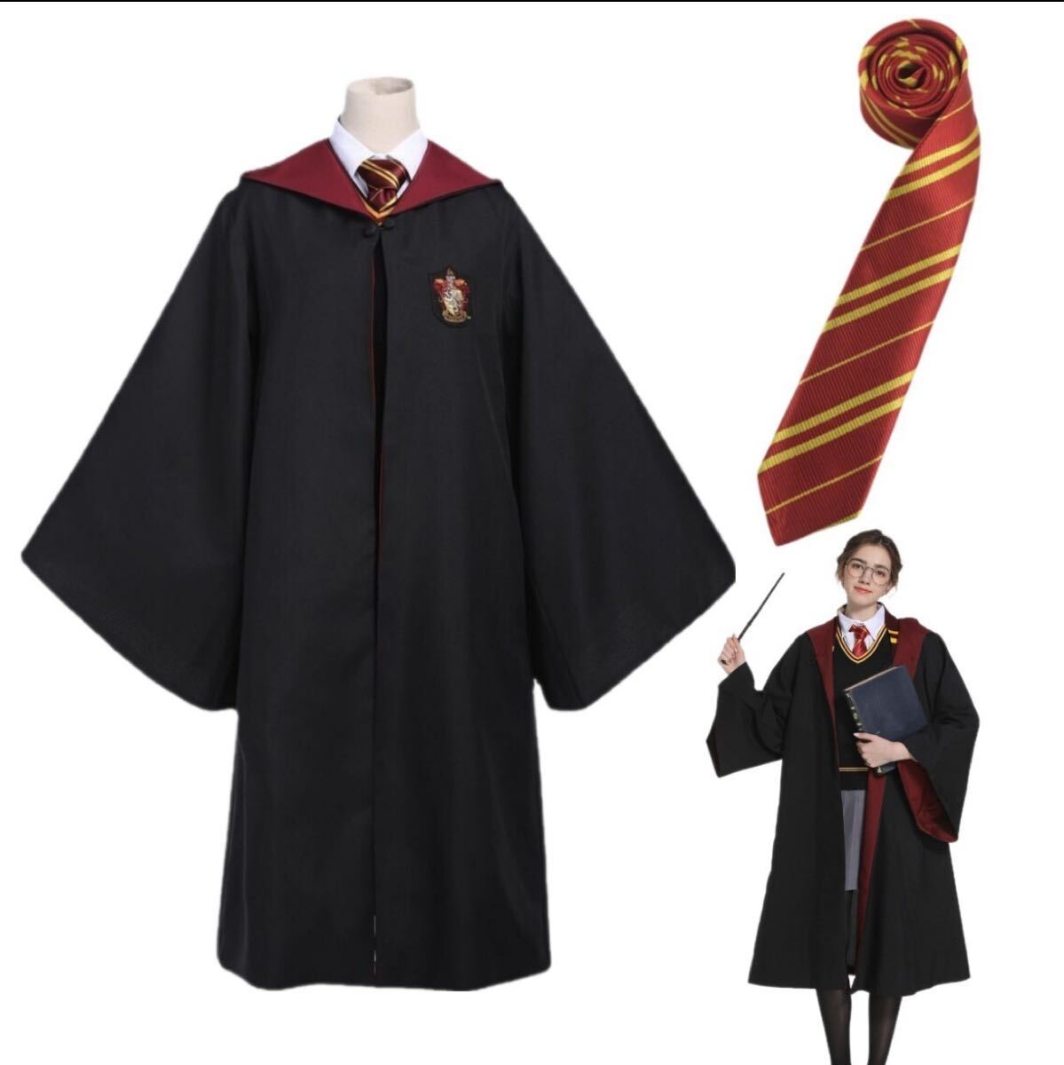 ハリーポッター、グリフィンドールをイメージしたデザインのローブとネクタイの2点セットです