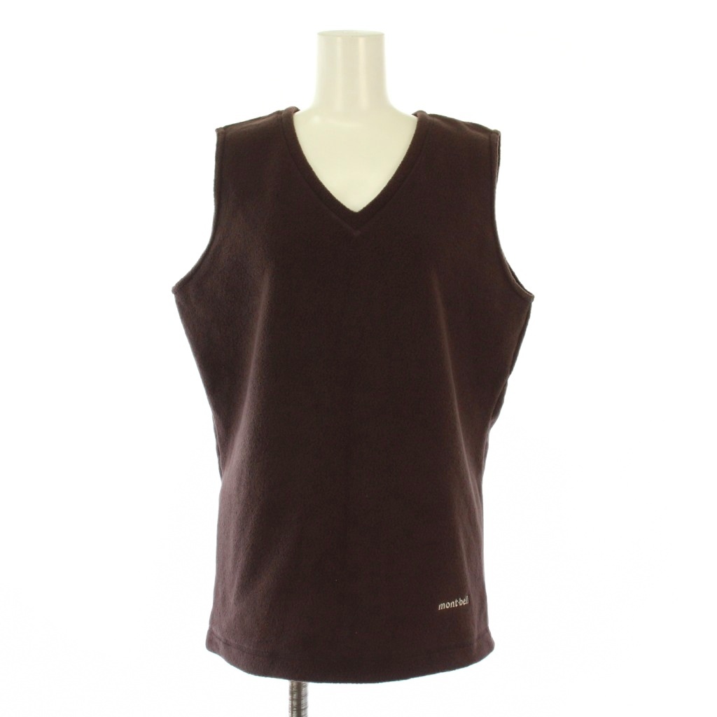 モンベル Montbell クリマプラス100 ベスト Vネック ストレッチ ロゴ 刺繍 ワンポイント XL 茶 ブラウン 1106602 /BB レディース