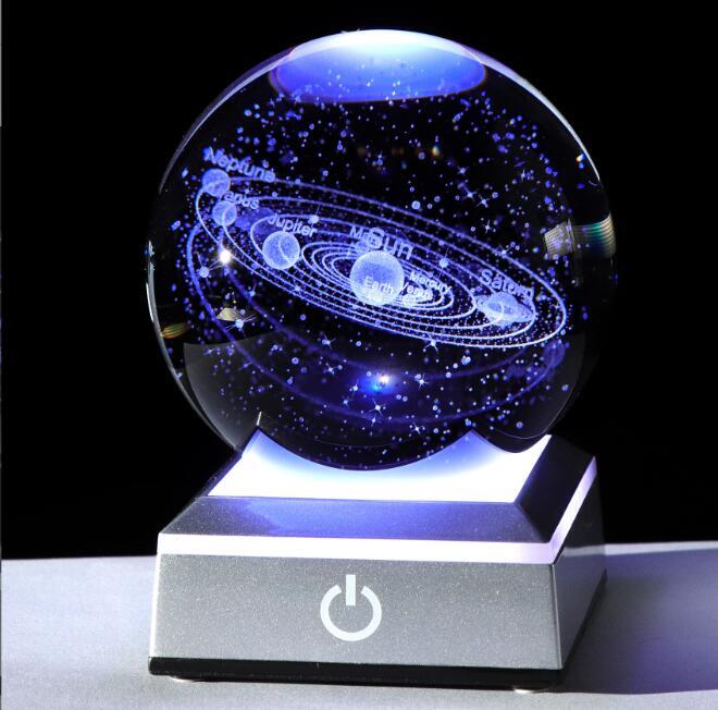 新入荷LED 天体 クリスタルボール 3Dボール レーザー彫刻 月 火星 土星 木星 太陽 地球 天文 USBケーブル ライト