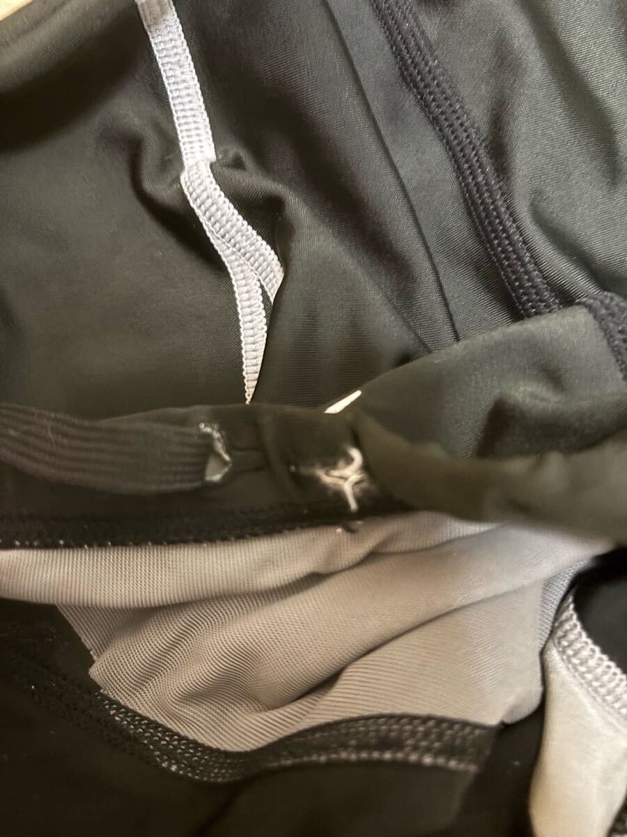 穴などはありませんが使用感あります。灰色の方は紐が片方潜ってしまっております。写真をご参照ください。Fina公認モデルですので大会参加できます。