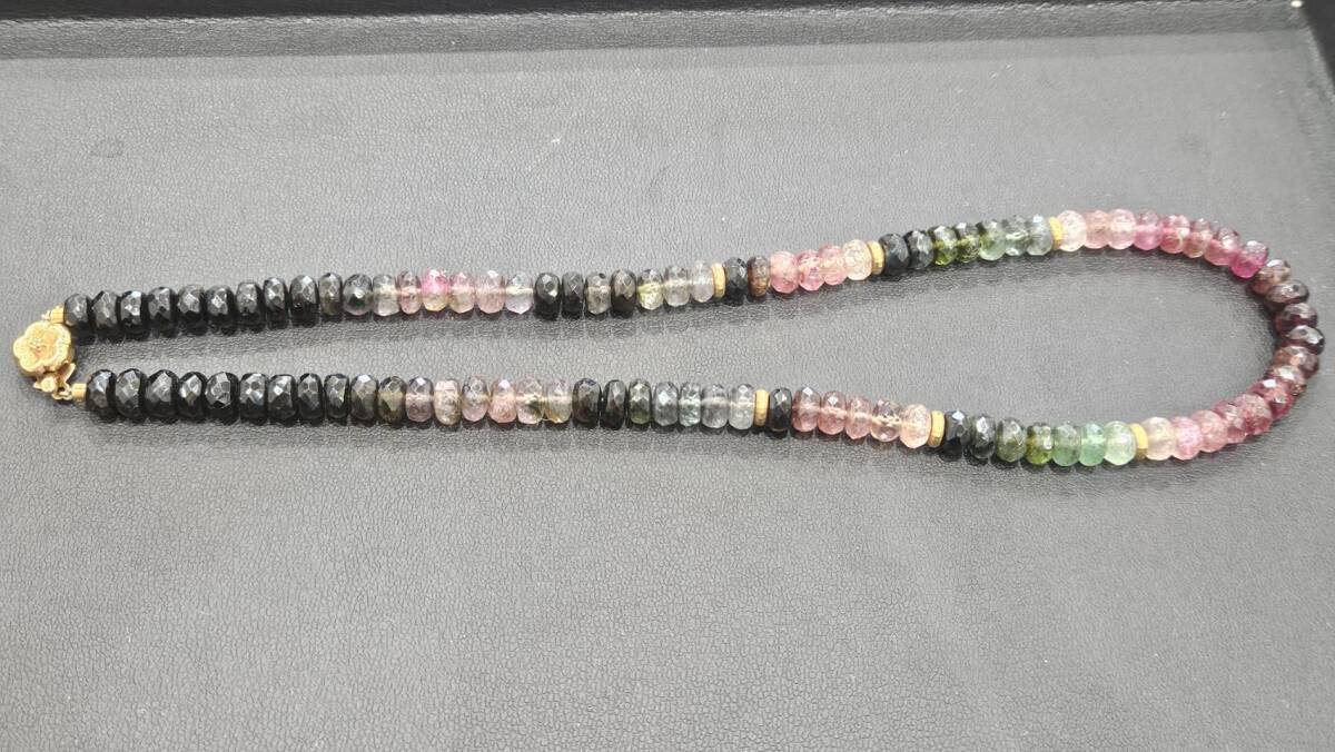 FI 699 K18刻印 トルマリン 天然石 ネックレス 37.6g 約42㎝ | ||