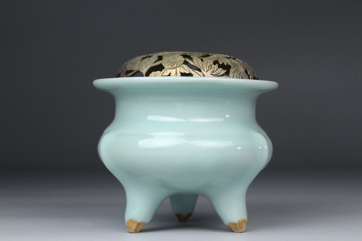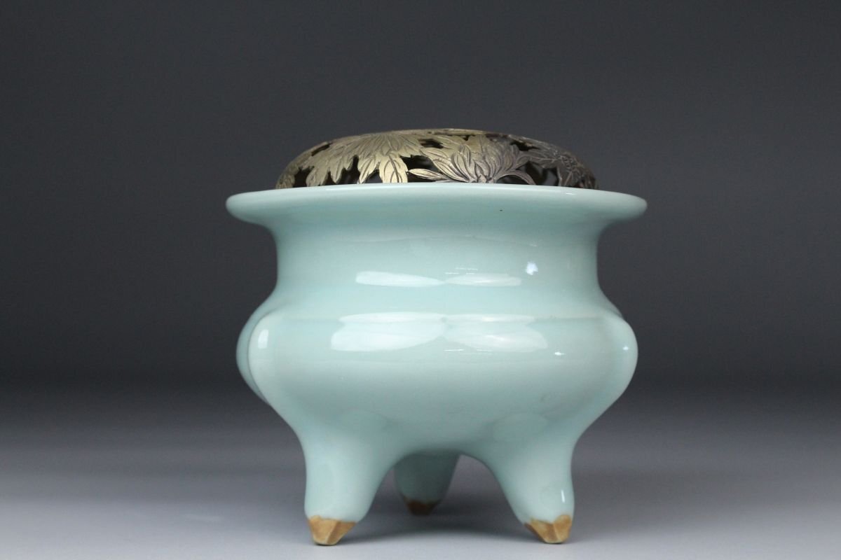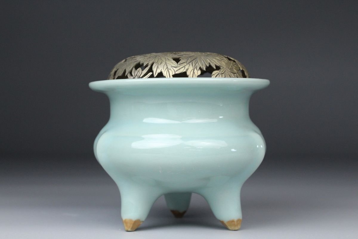 * * * 商品詳細 * * * ここでしか出逢うことのできない唯一の美をご紹介させて頂きます。 潤いを感じる青磁の質感が魅力的な 静山 青磁袴腰香炉のご紹介です。 袴腰の名の通り腰の膨らみが女性的な柔らかい曲線を描き、翡翠の様な青磁と相まって とても上品な印象を醸し出しています。 香を焚けば風勢に満ちた仕覆の時間を堪能できることでしょう。 この機会に是非お手元にてご堪能ください。 ■商品内容/ 香炉、共箱 ■サイズ/横10.5㎝×高10㎝×奥行10.5㎝(火屋を含む) 箱:横13.5㎝×高13.5㎝×奥行13.5㎝ 火屋:50g ■状態/ スレ、小傷、汚れ、箱にスレ、傷、汚れ、紐に破れがございます。 ※写真にてご確認、ご了承の上ご入札下さい。