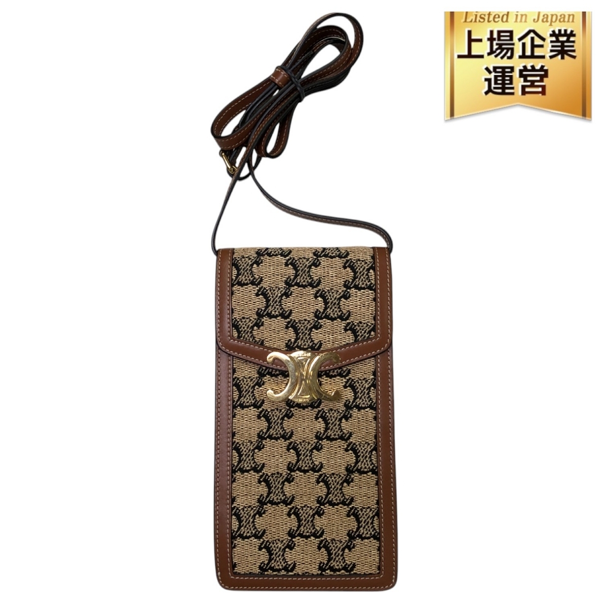 セリーヌ トリオンフ フォンポーチ ストロー×レザー ショルダーバッグ ベージュ 中古 良好 T10285948 |