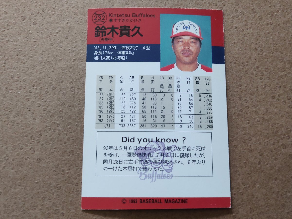 鈴木貴久 近鉄バファローズ BBM'93