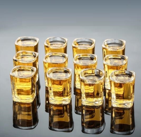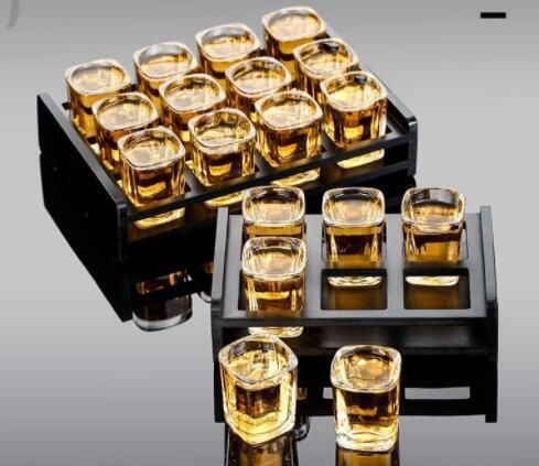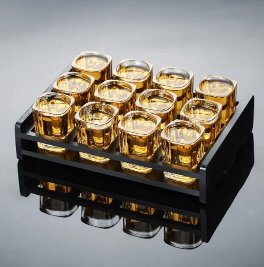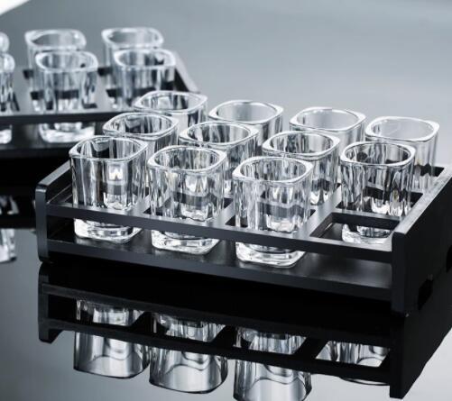 新作【12個セット】スクエアショットグラス+ブラックラックセット ウイスキー/洋酒/白酒用 バー/KTV向け