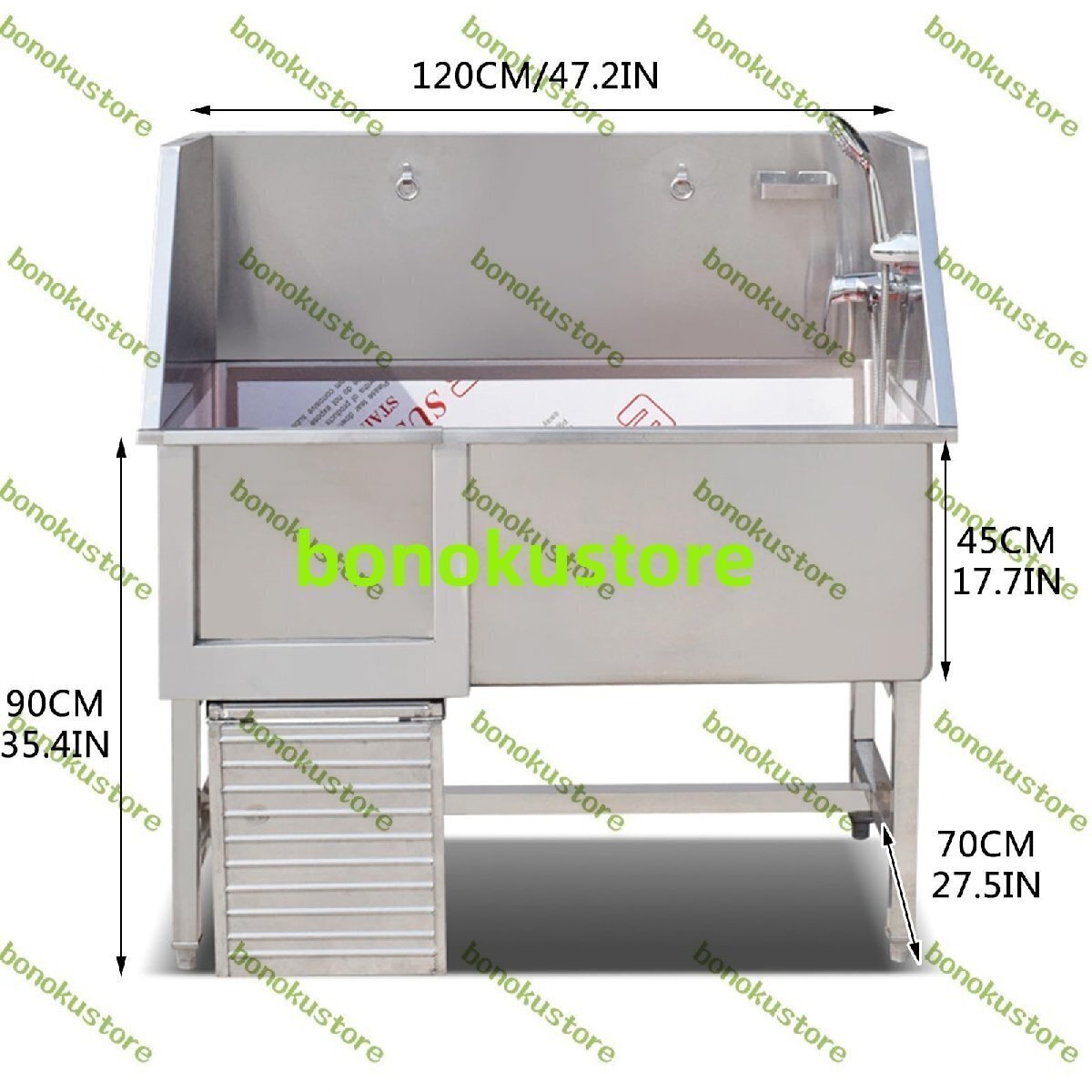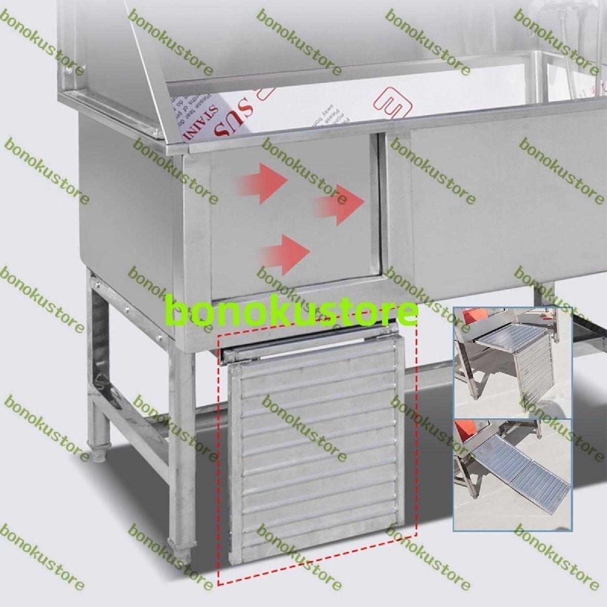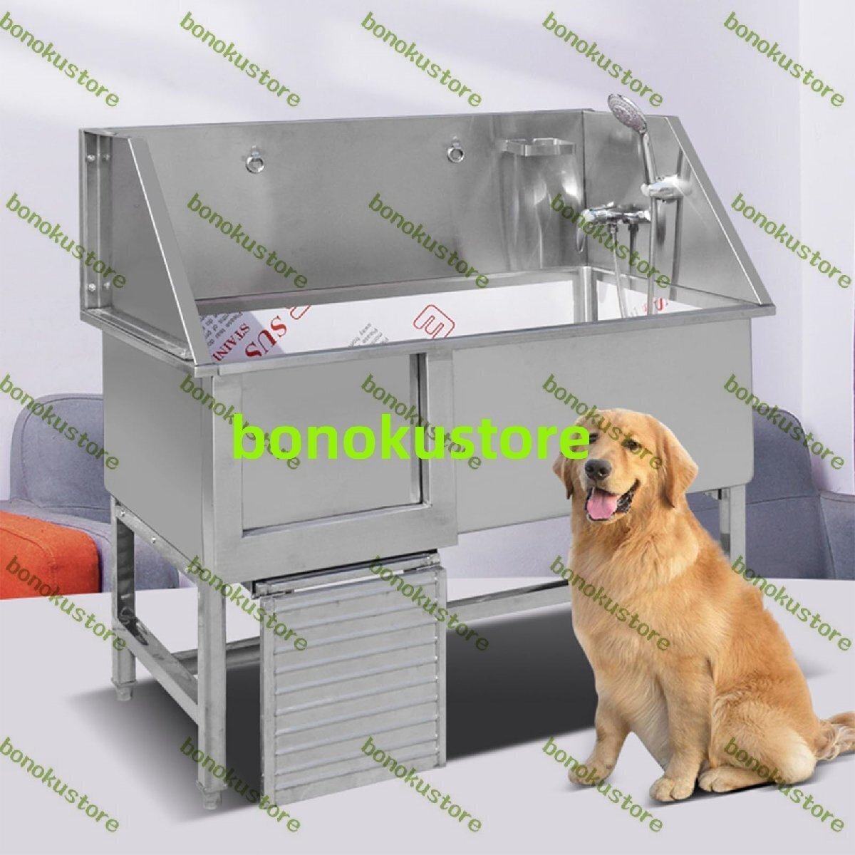 プロフェッショナルステンレススチールペット犬グルーミングバスタブ スロープ付きペット犬入浴ステーション ドッグバス 大型犬用浴槽120cm