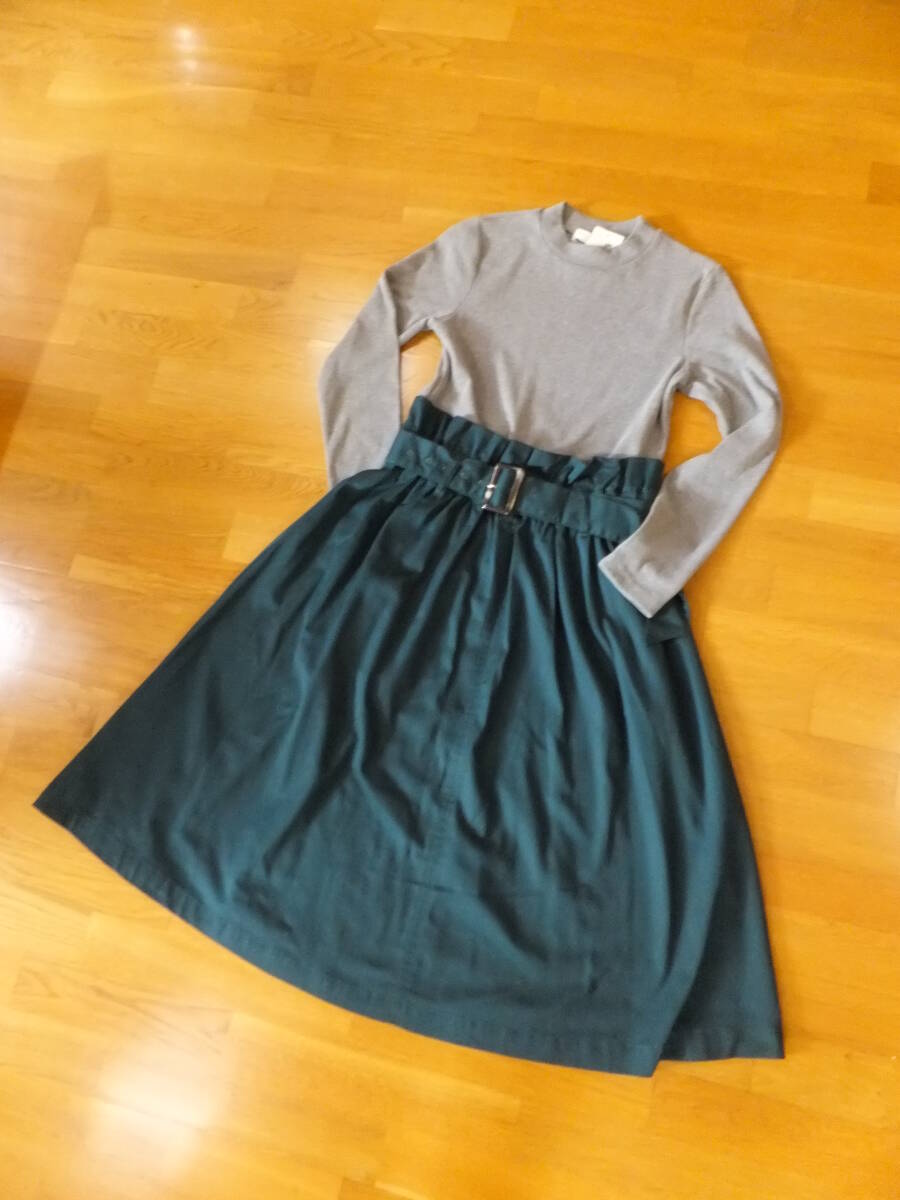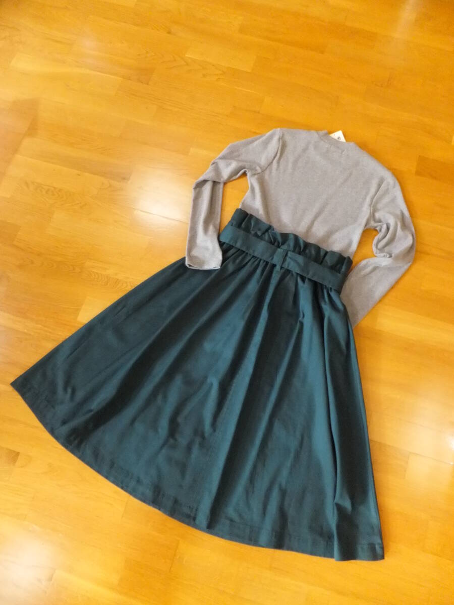 【earth music&ecology】アースミュージックアンドエコロジー/ドッキングワンピース/グレー×ダークグリーン ≪未使用・タグ付き≫